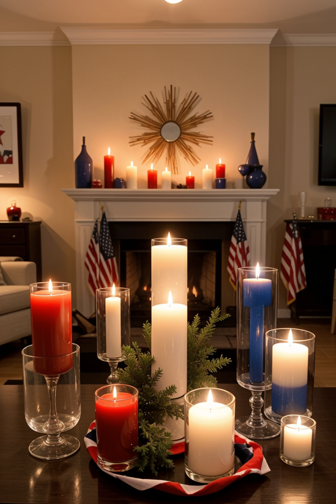 Add festive candles of different shapes and heights in red, white, and blue to the dining tables and side tables outdoors for evening gatherings and get-togethers. Place these candles in clusters on the side tables or on the dining tables. Use star-shaped lanterns or glass hurricane holders for more safety and appeal. The lighting gives warmth and intimacy which is accentuated during late night viewings of fireworks. This sentiment works well for modern and rock ensembles and decor.