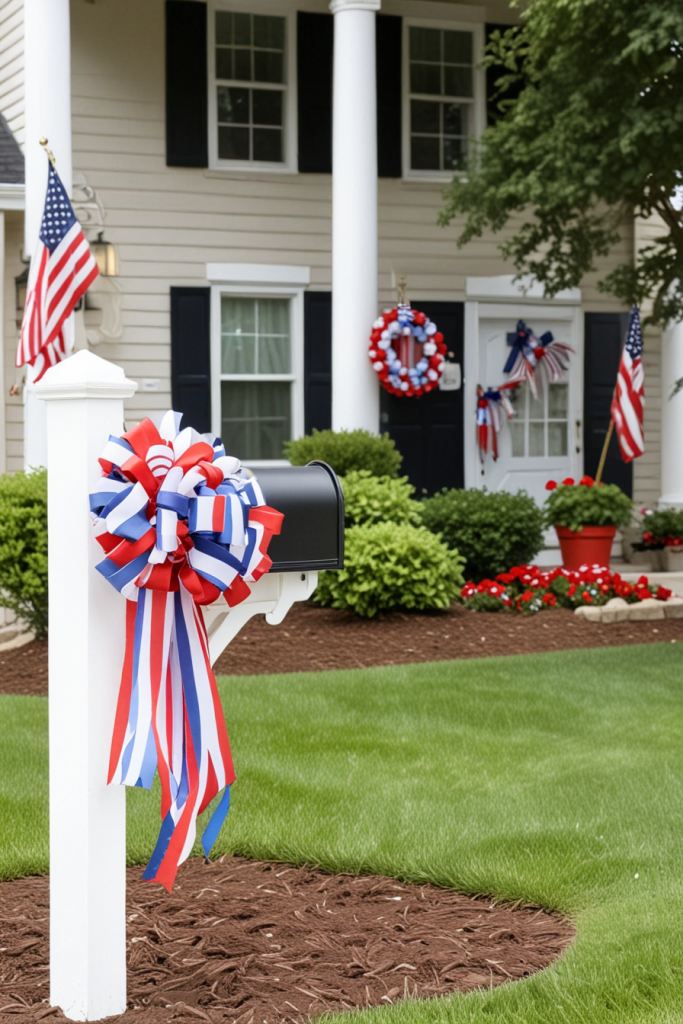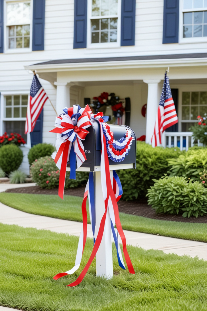 Continue the celebration right into your neigbourhood by adding patriotic bunting, mini flags, ancestor flags and decorative ribbons to festively decorate your mailbox. You can wrap the post with striped fabric, or paint temporary stars with removable, chalk paint. Finish the decoration with a small waterproof container holding themed flowers to complete the arrangement.