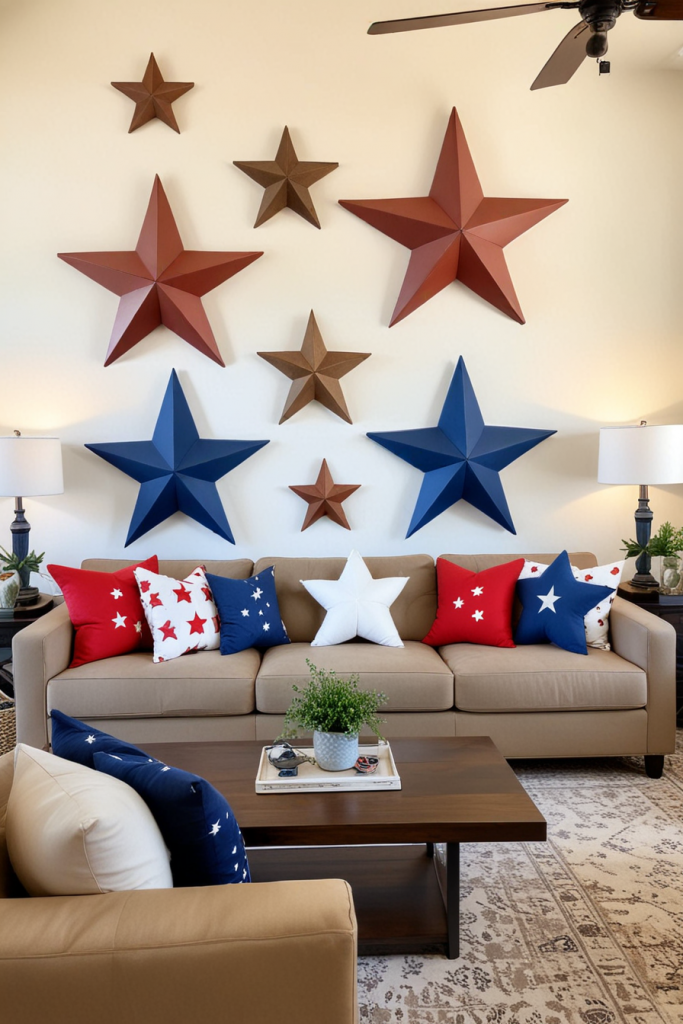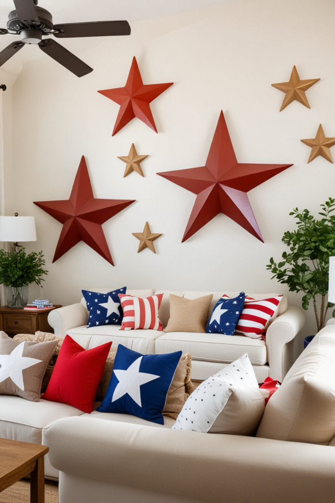 Stars have always symbolized American pride. Furthermore, the shapes of stars can be used as wall decals, table scatter, or even on cushions. Big wooden stars can make stunning statement pieces hung over a fireplace or on doors, while the smaller metallic ones are great for centerpieces. It’s best to pair this design with neutrals so the red, white and blue colors not only contrast but pop.