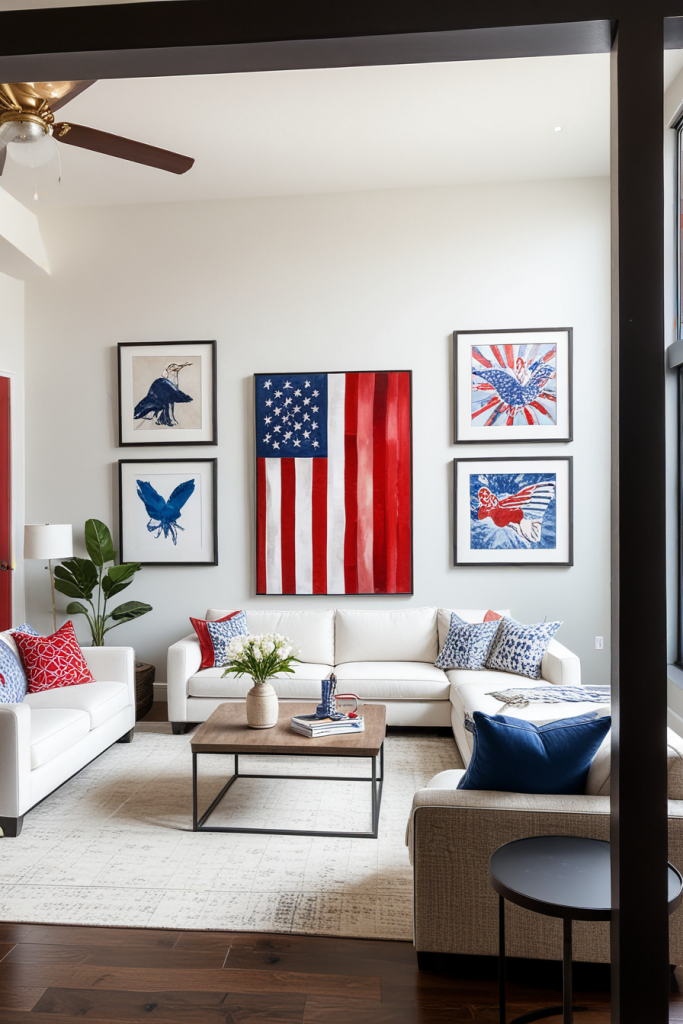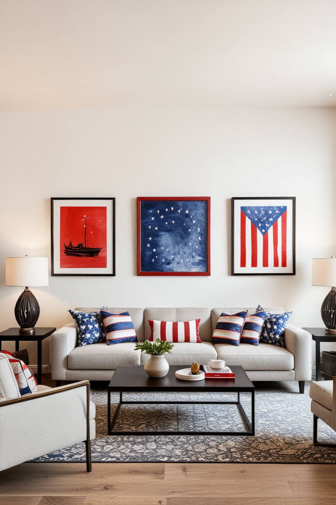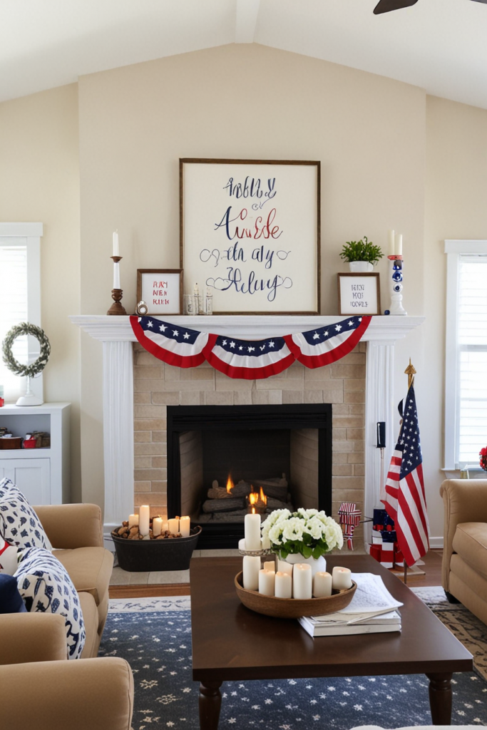 You may enhance your living or dining areas with Independence Day decorations by adding stylish temporary wall displays featuring flags, fireworks, and other related symbols. Focus on flag prints and dynamic typographies that evoke zealful feelings to fit your theme for this holiday. Choose modern black or white frames and wooden ones to maintain a fresh and clean celebratory look. This approach solves the problem of how to celebrate holidays while not making significant changes to the décor.