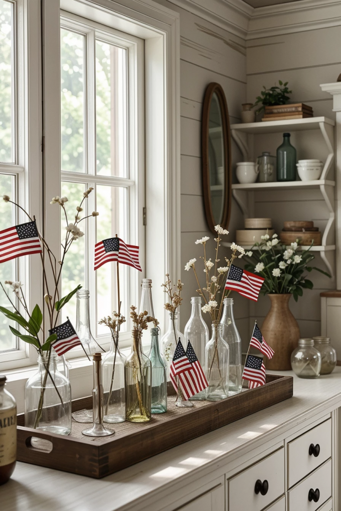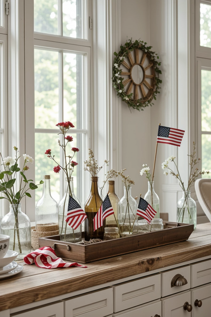 Vintage Bottles and American Flag Florals for Subtle Decor