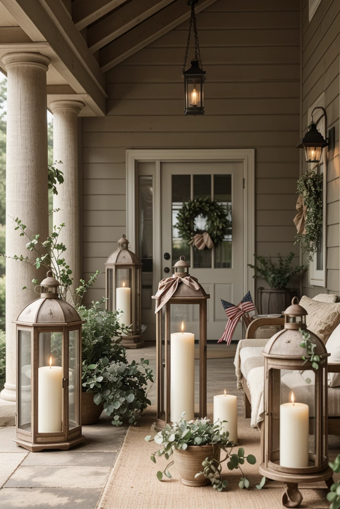 Using Weathered Lanterns for a Soft Patriotic Glow