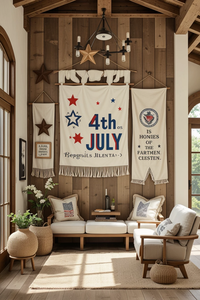 Wall decor serves not just as a way to beautify the walls but also allows for flexible creativity by observing the style of Independence Day without going over the board by using intricate Add them to banners, wall flags, or Textiles that use stitches like stars or flag shapes or even quotes from famous documents feel more personal. Spruced up with basic wooden rods or repurposed wood, they look as if they were home made and don’t feel out of place in rustic farmhouse style interiors.