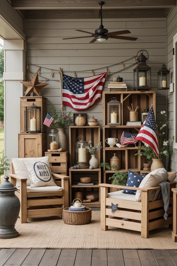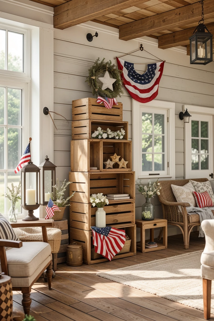 Wooden Crate Displays for Rustic Patriotic Showcases