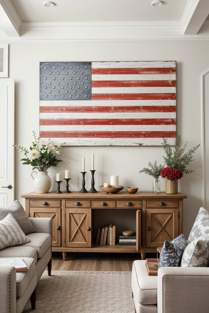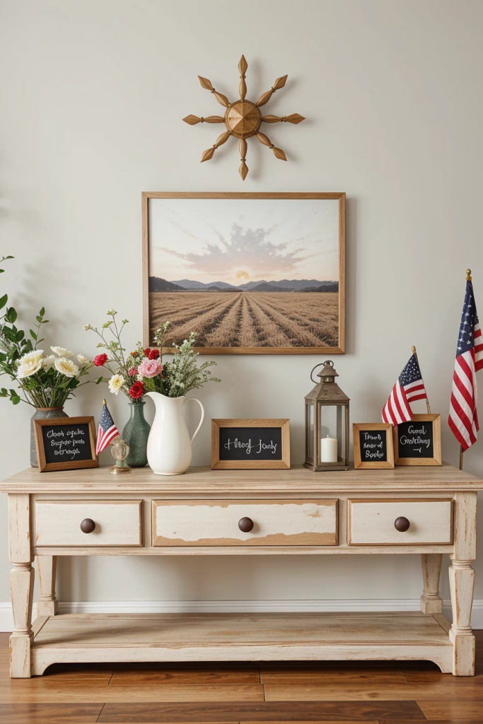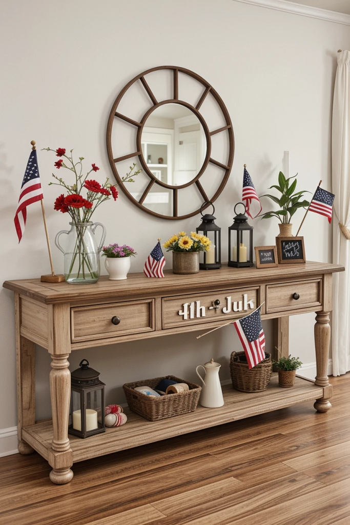 Farmhouse Console Tables with Elegant Independence Day Accents