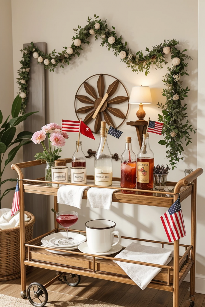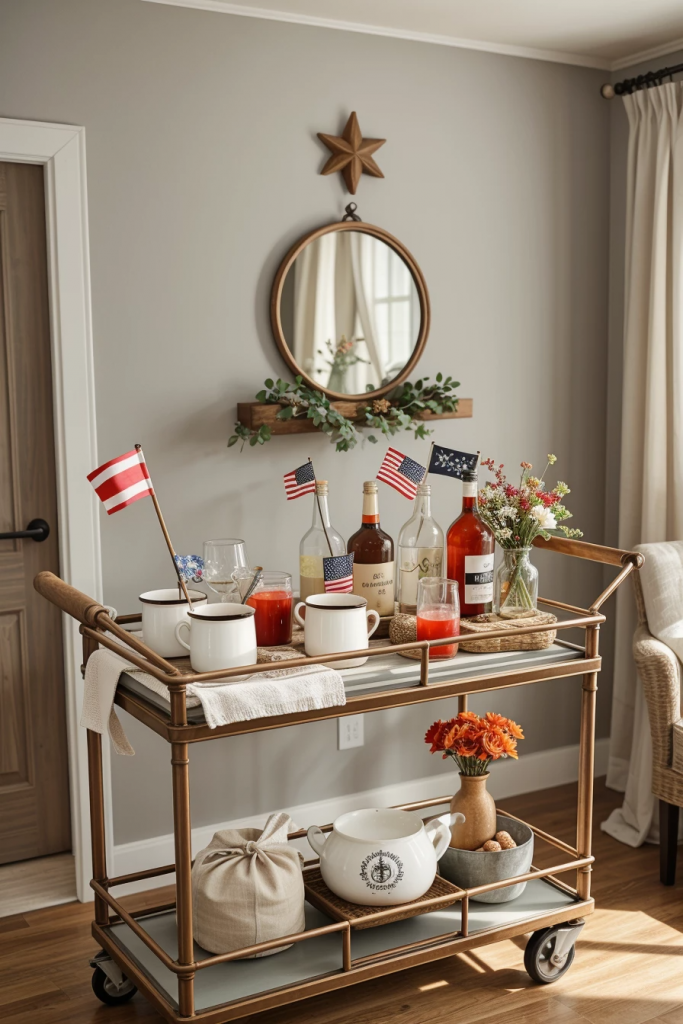 Rustic Farmhouse Bar Cart Styling for Independence Day