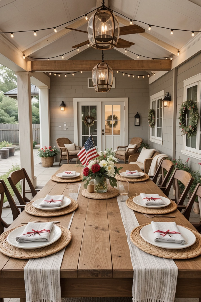 Chic Outdoor Dining Spaces with Subtle Independence Day Flair