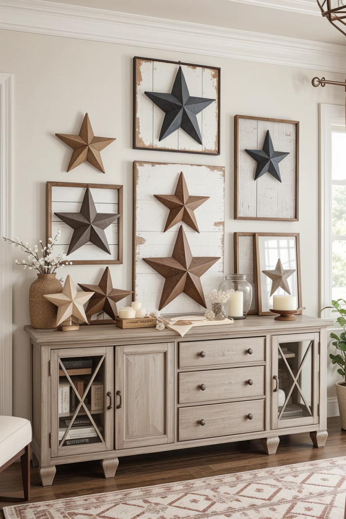 Using Subdued Stars in Wall Art for Farmhouse Elegance