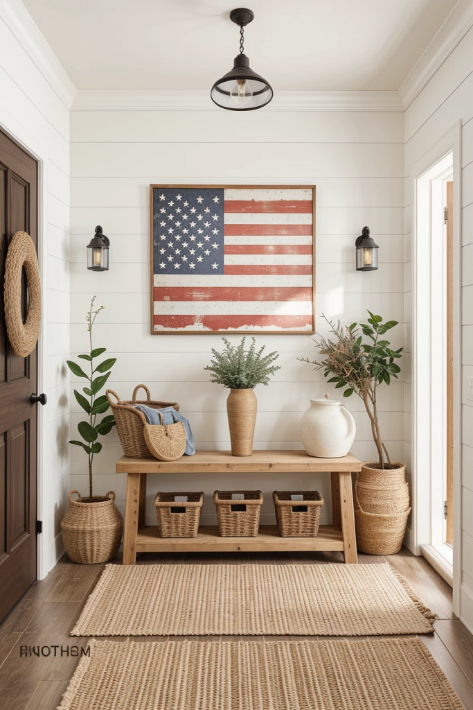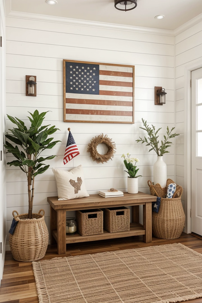 Modern Rustic Farmhouse Entryway Decor for the 4th of July