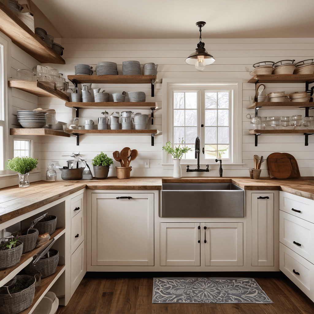 Farmhouse style consists of warmth and coziness, which make rural kitchen a perfect fit for it. Farmhouse kitchens are characterized by traits such as open shelving, vintage-inspired fixtures, and neutral colors. In farmhouse-type rustic kitchen ideas, shiplap walls, apron-front sinks, and wood countertops are usually included, which altogether make a house a conducive and warm place to stay in. The main idea is to create a space, which is genuine, warm and comfortable, a blend of functional and decorative elements that enhance the overall charm.