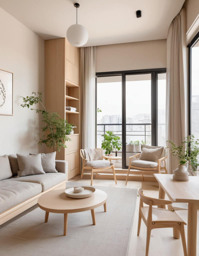 A harmony of the two opposing cultural concepts, Japandi style combines the Swedish function with the Japanese purity on the interiors of small apartments in 2025. This design is very natural and the hues are very light, making the whole environment extremely ambient and airy, therefore, clutter-free spaces are born. Japandi interior architectures are light colors mainly light wood, slim design furniture, and matching or complementary items like flowers, and also art objects or paintings should be chosen theme-wise through which calm and comfort are achieved. In a small apartment, the Japandi design theme is not only creating a unified look but also a feeling of warmth and comfort, although in a limited space.
