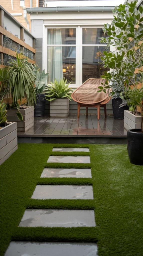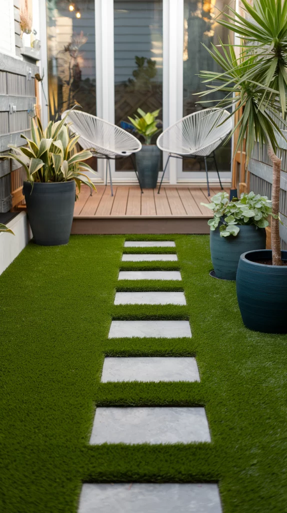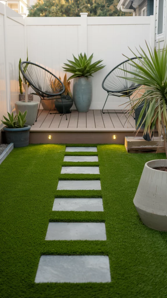 Artificial grass is an excellent solution for a tidy, green yard without the hassle of maintenance. Modern options offer realistic textures and colors that blend seamlessly with your landscaping. Pair artificial grass with potted plants, stepping stones, or a small deck to add variety and depth.