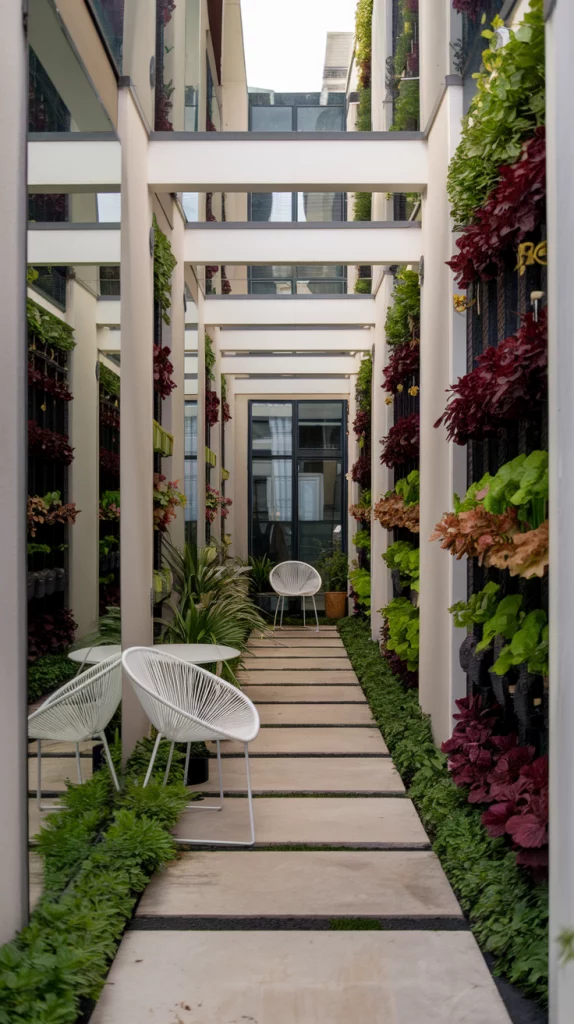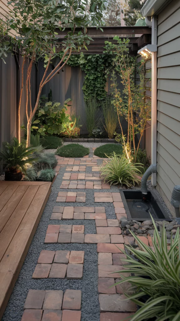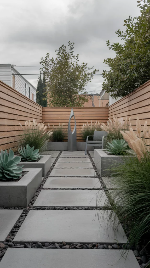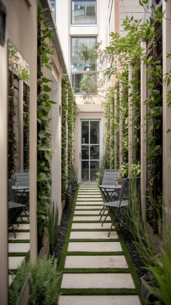 Narrow backyards can feel spacious with the right design. Use long, straight pathways to draw the eye through the space, and plant vertical gardens or tall shrubs along the sides. Incorporate slim furniture and use layered planting to add depth without crowding the area. Mirrors can also help create the illusion of width.