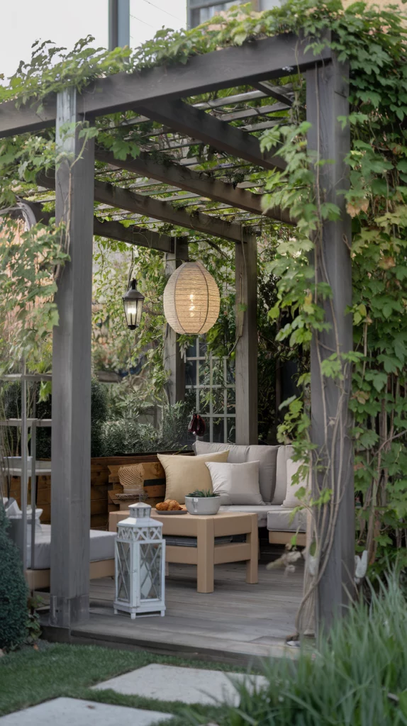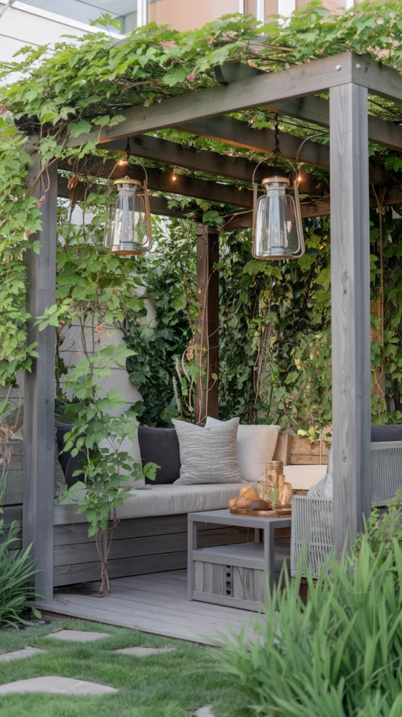 A pergola can add both functionality and elegance to a small backyard. Choose a slim, modern design to avoid overwhelming the space. Use the pergola for shade by adding climbing plants like jasmine or wisteria, or install retractable fabric canopies. String lights or hanging lanterns can enhance the pergola’s charm for evening gatherings.