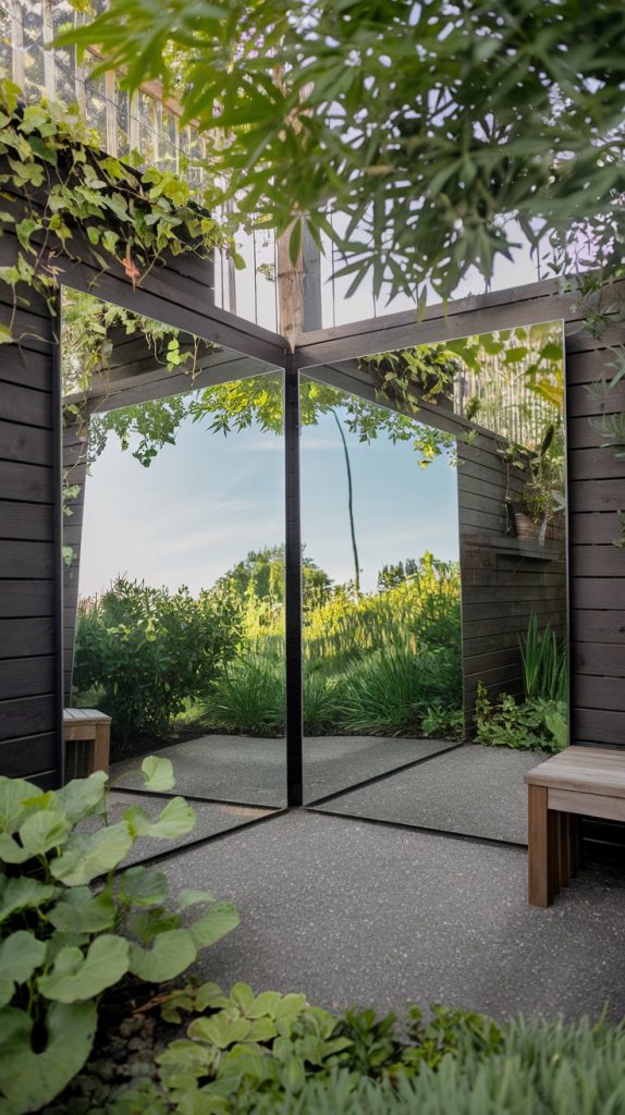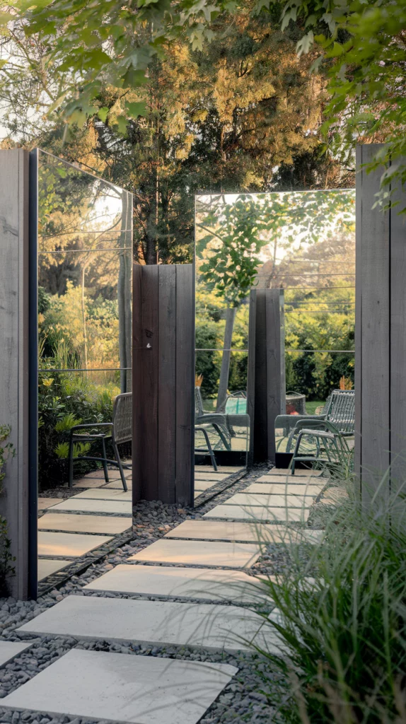 Strategically placed mirrors can make a small backyard feel much larger. Mount mirrors on walls or fences, ideally surrounded by greenery to blend seamlessly with the natural environment. Opt for weather-resistant frames and experiment with various shapes, such as round or arched designs, to add visual interest.