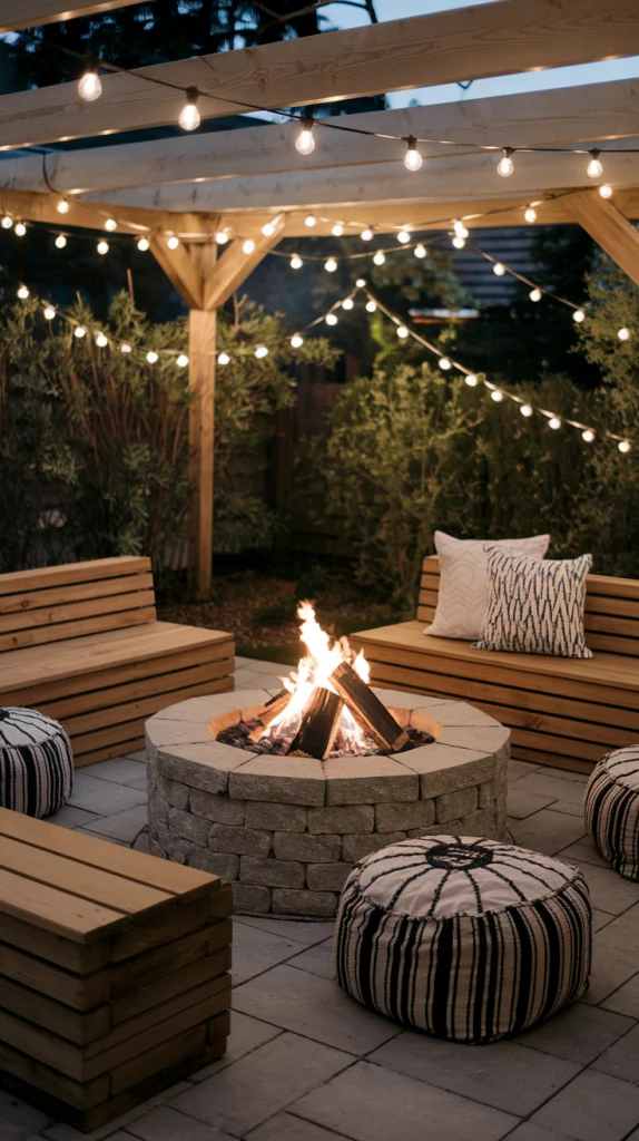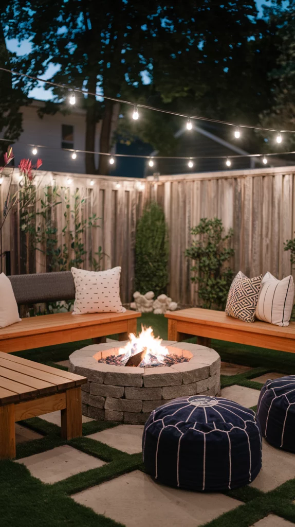 Fire pits are an excellent addition to small backyards, creating a cozy focal point for gatherings. Opt for compact, portable designs or built-in options with a minimalist aesthetic. Surround the fire pit with space-efficient seating, such as benches or outdoor poufs. Ensure safety by leaving ample space around the fire pit and using non-flammable materials like stone or metal.