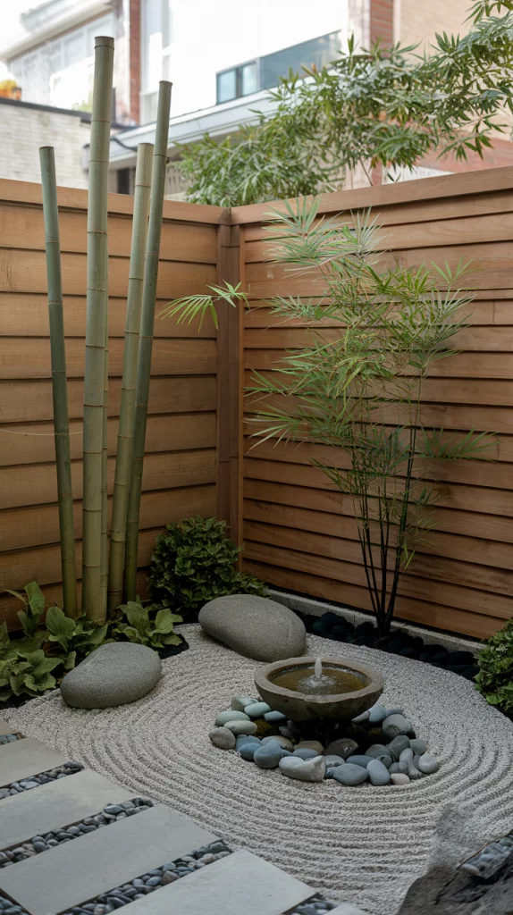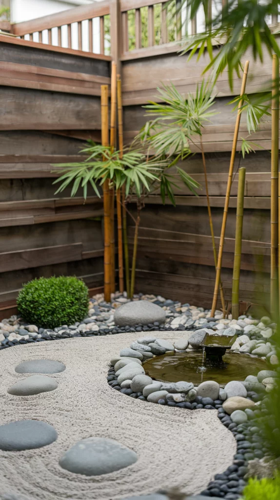 A Zen garden can provide a serene retreat in even the smallest of spaces. Use gravel or sand raked into intricate patterns, paired with smooth stones and bamboo accents. Include a small water feature, like a bubbling fountain, for a calming sound. Add greenery sparingly, focusing on simplicity and harmony.