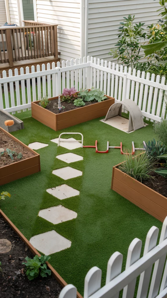 Designing a kid-friendly backyard in a small space involves maximizing functionality and fun. Incorporate compact play equipment, like a small swing set or sandbox, and use durable, weather-resistant materials. Add soft grass or rubberized flooring for safety and include creative elements like chalkboard walls or a mini garden for interactive play.