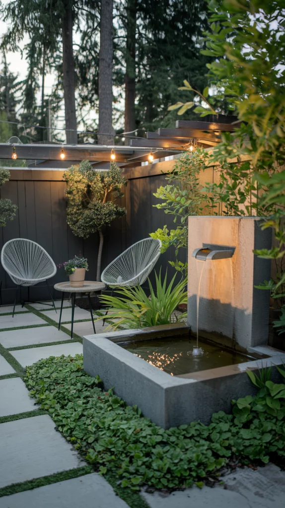 A small water feature can instantly elevate your backyard’s ambiance. Consider a sleek, modern fountain, a bubbling rock feature, or a compact pond with aquatic plants. Place it near seating areas for a calming effect. Use natural materials like stone and wood to blend the feature seamlessly into the landscape.