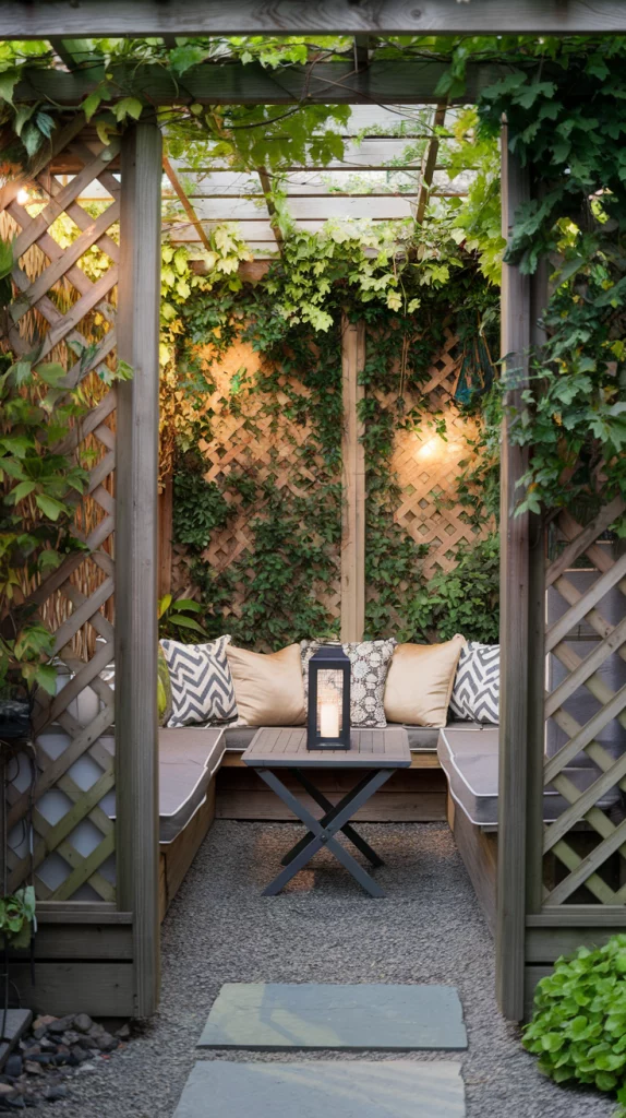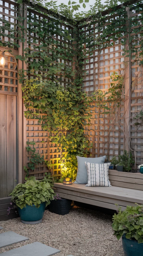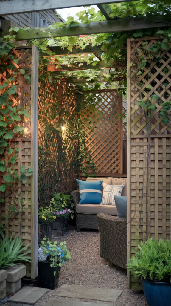 Privacy screens can make a small backyard feel like a secluded retreat. Use wooden lattice panels, bamboo screens, or tall shrubs to create barriers without compromising on aesthetics. Hanging plants or climbing vines can soften the look and add greenery. Install these screens around seating or dining areas for a cozy, intimate vibe.