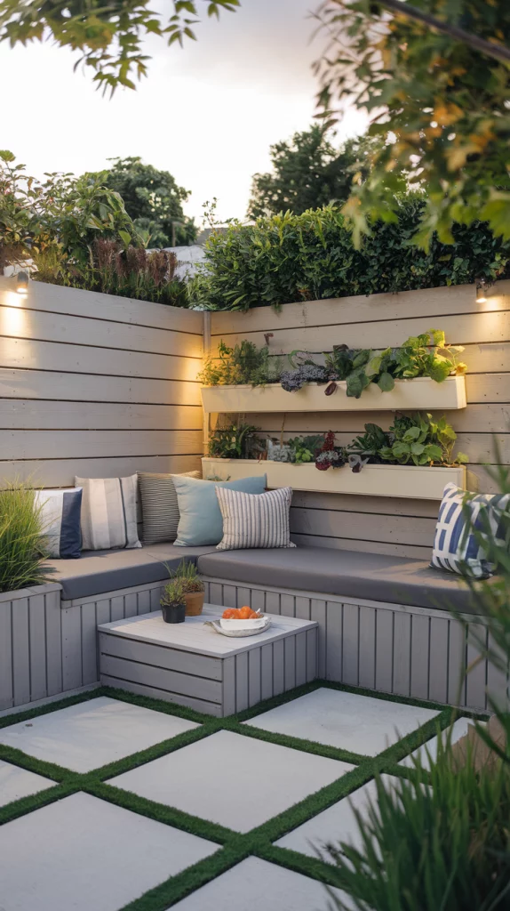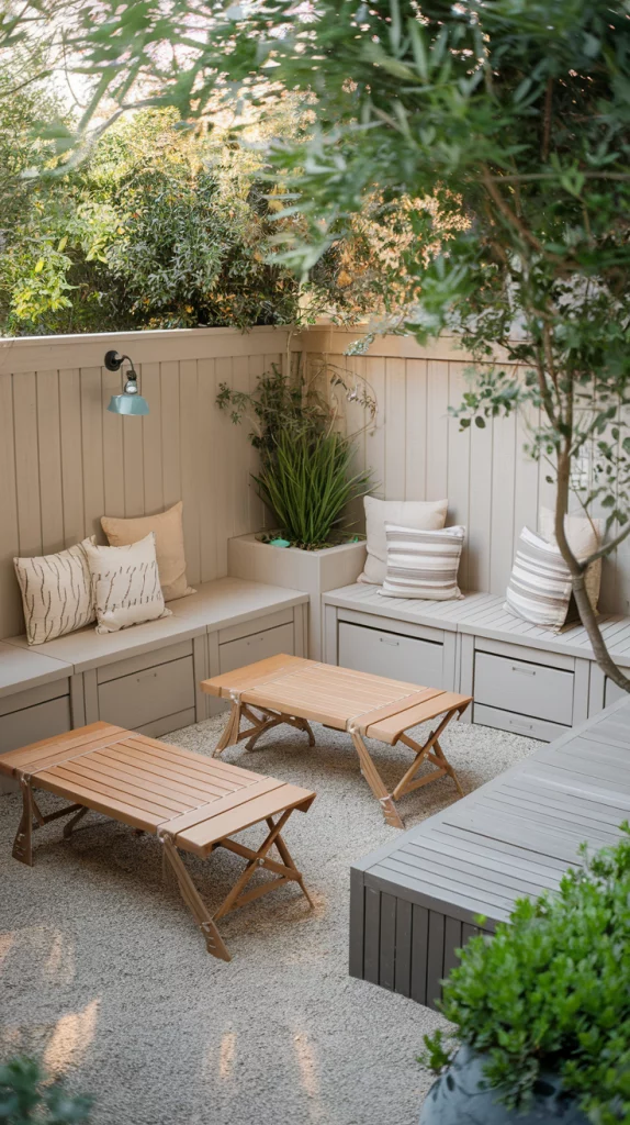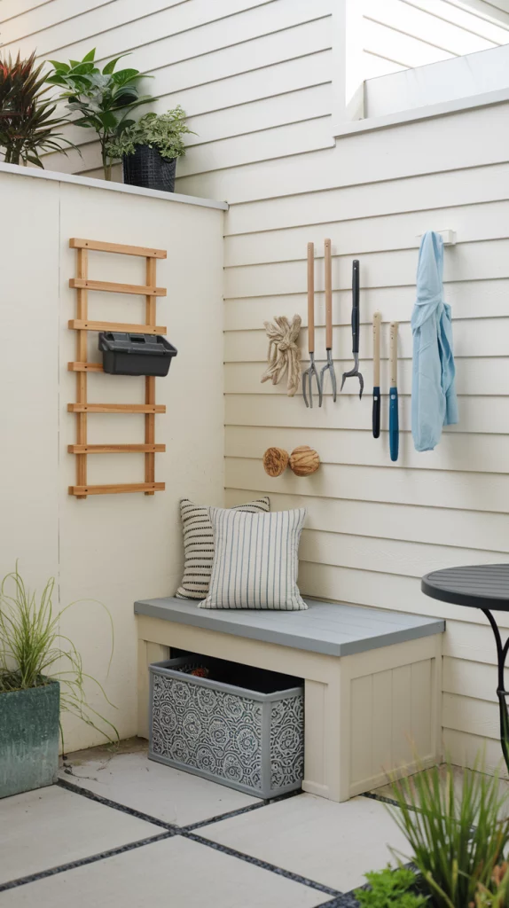 Maximize storage in your small backyard with creative solutions. Use benches with built-in storage, wall-mounted racks for garden tools, or vertical cabinets for outdoor essentials. Hidden storage under decking or in decorative boxes keeps the space clutter-free while maintaining style.