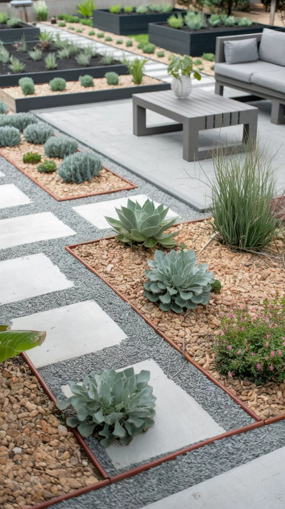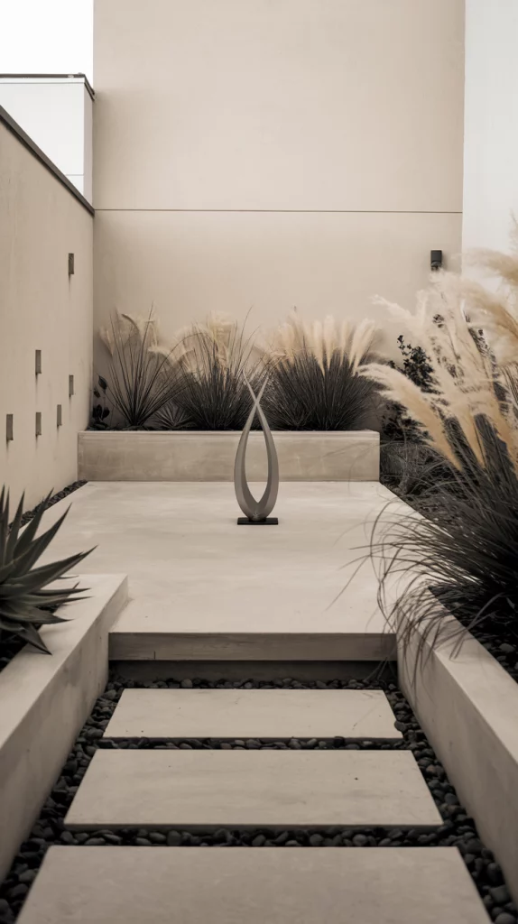 Minimalist landscaping focuses on simplicity, clean lines, and functionality. Use sleek materials like concrete, gravel, or smooth pavers for pathways and patio areas. Incorporate minimal plants, such as succulents, ornamental grasses, or bonsai, to maintain a clean aesthetic. A single statement piece, such as a modern planter or sculpture, can act as a focal point while keeping the design uncluttered.
