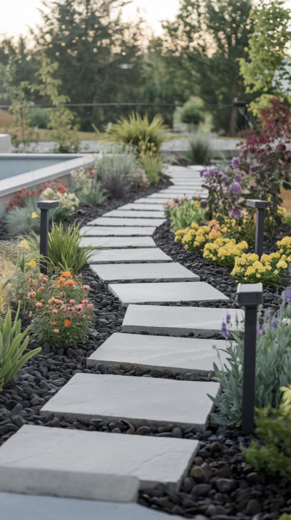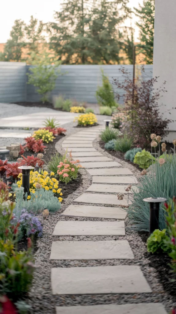Pathways can add a charming touch while guiding visitors through your backyard. Use narrow stone, brick, or gravel paths bordered by small shrubs or flowers to enhance the visual flow. Add solar-powered pathway lights for evening functionality and aesthetic appeal.