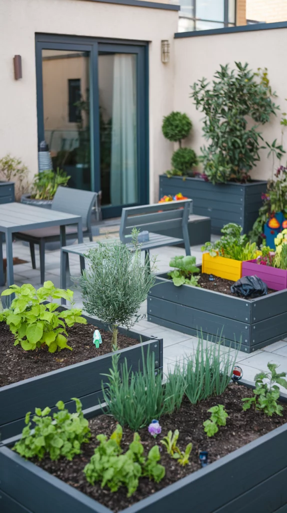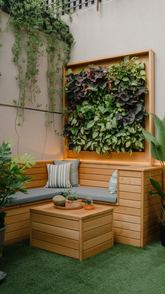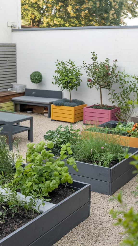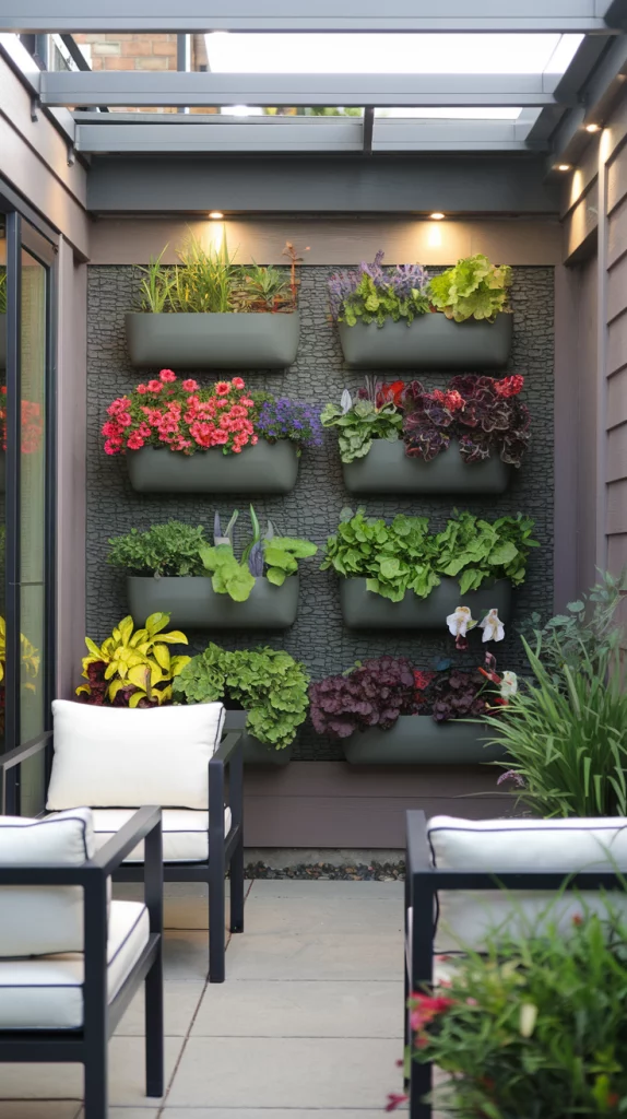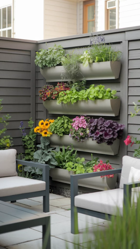Vertical gardening is perfect for maximizing greenery in limited space. Use wall-mounted planters, tiered shelving units, or trellises to grow flowers, herbs, or even small vegetables. Choose a mix of vibrant plants to add depth and color to your walls. This design not only saves space but also adds a lush, modern aesthetic to your backyard.