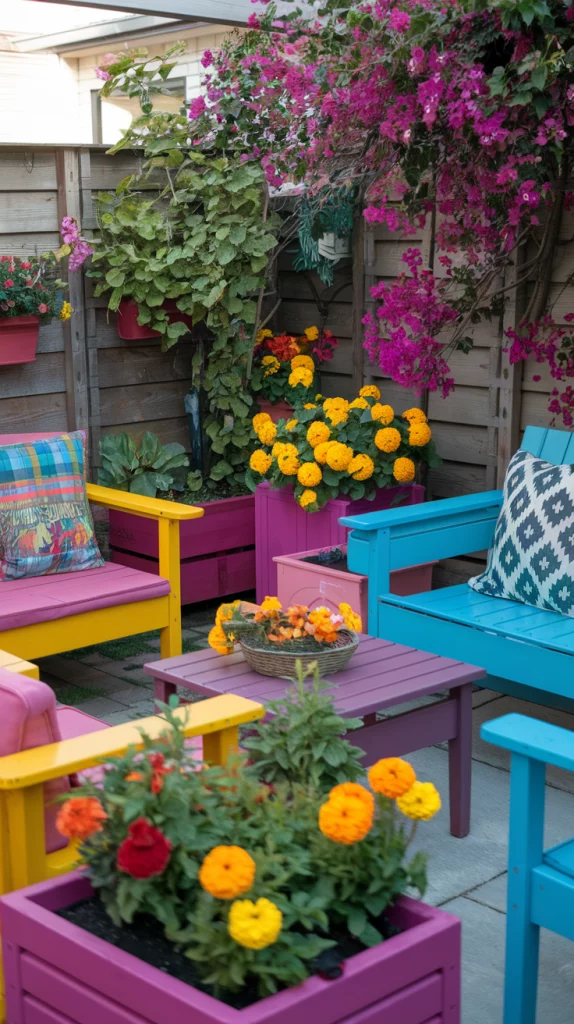 Bold colors can make a small backyard visually dynamic. Use brightly colored furniture, vibrant planters, or painted fences to add personality. Flowers like marigolds, petunias, or bougainvillea can create lively focal points. Balance bold colors with neutral elements, such as wooden accents or stone pathways, to avoid overwhelming the space.