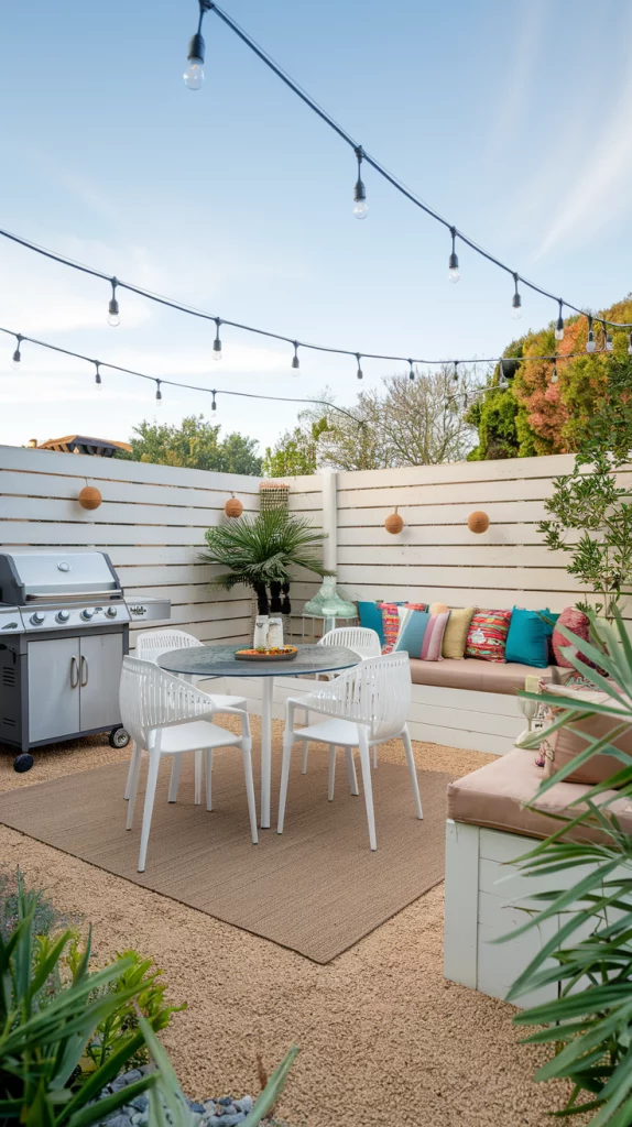 Transform your small backyard into an entertainment hub with a smart layout. Include compact dining sets, a small barbecue grill, and a dedicated space for drinks or appetizers. Add string lights, outdoor rugs, and cushions to create a welcoming atmosphere. Use foldable or modular furniture to adapt the space for larger gatherings.