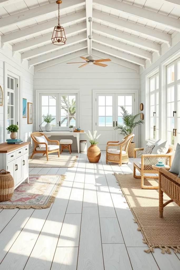 A beach cottage interior requires the perfect floor selection which connects style aspects with usable functionality. My search for beach flooring focuses on long-lasting materials which resist sand and water drops and maintain their soft touch.