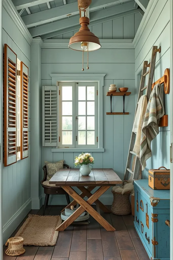 Painting ceilings with a delicate blue hue generates an open-air effect that works best for cottages with low ceilings.