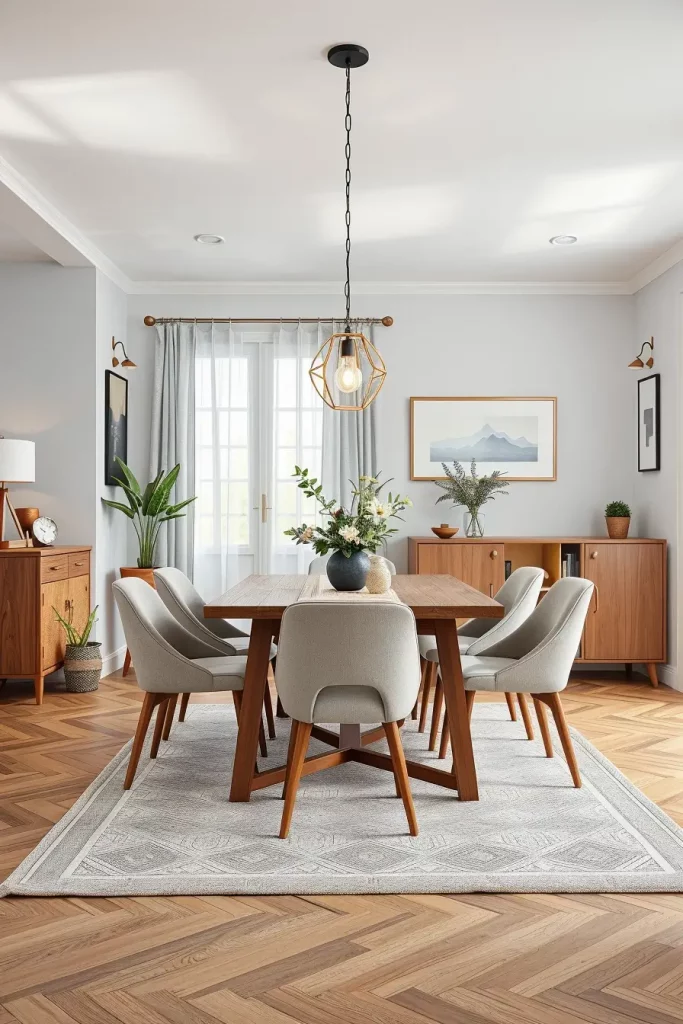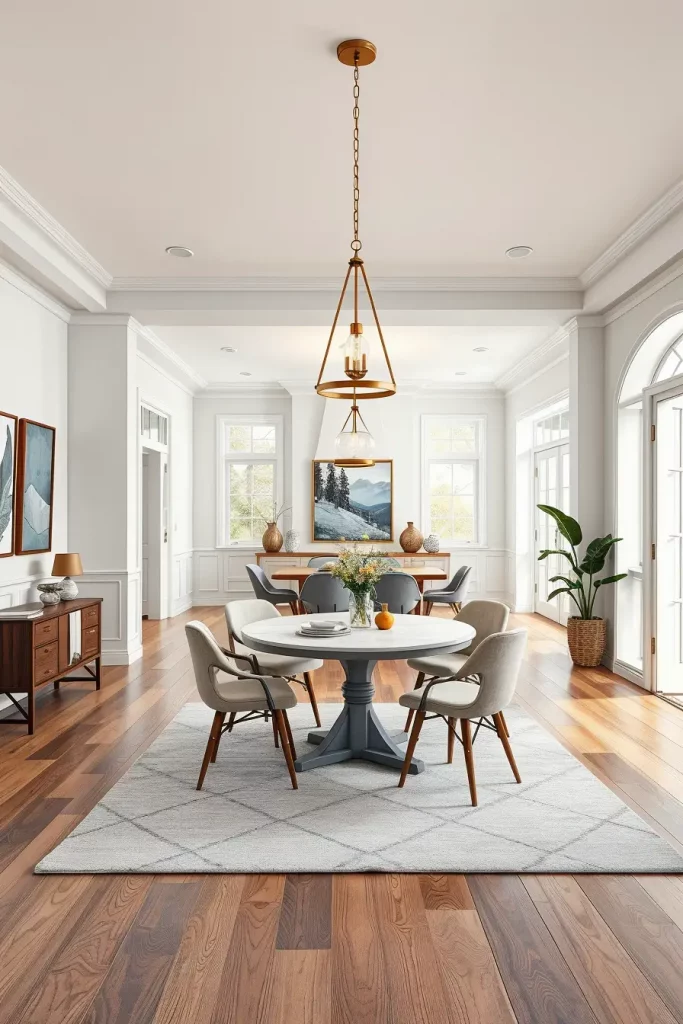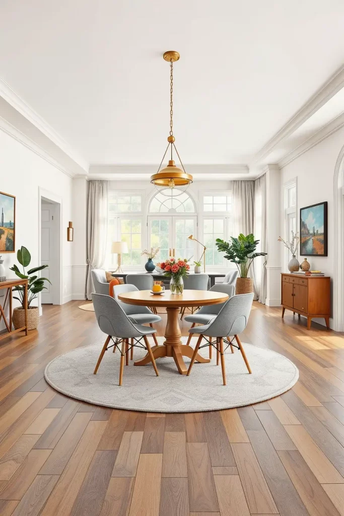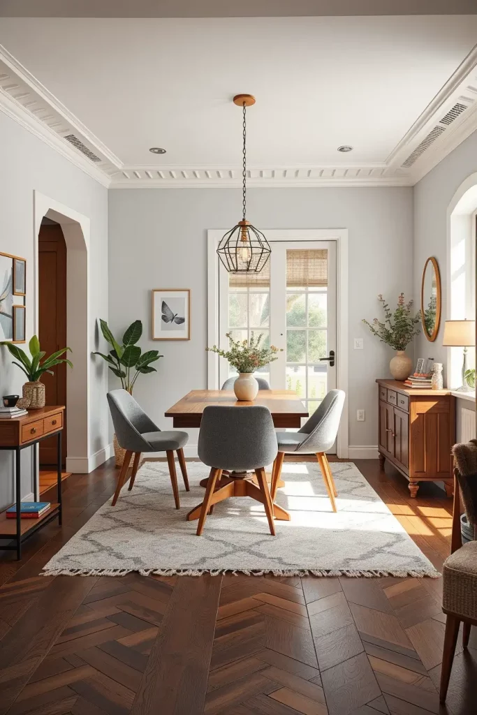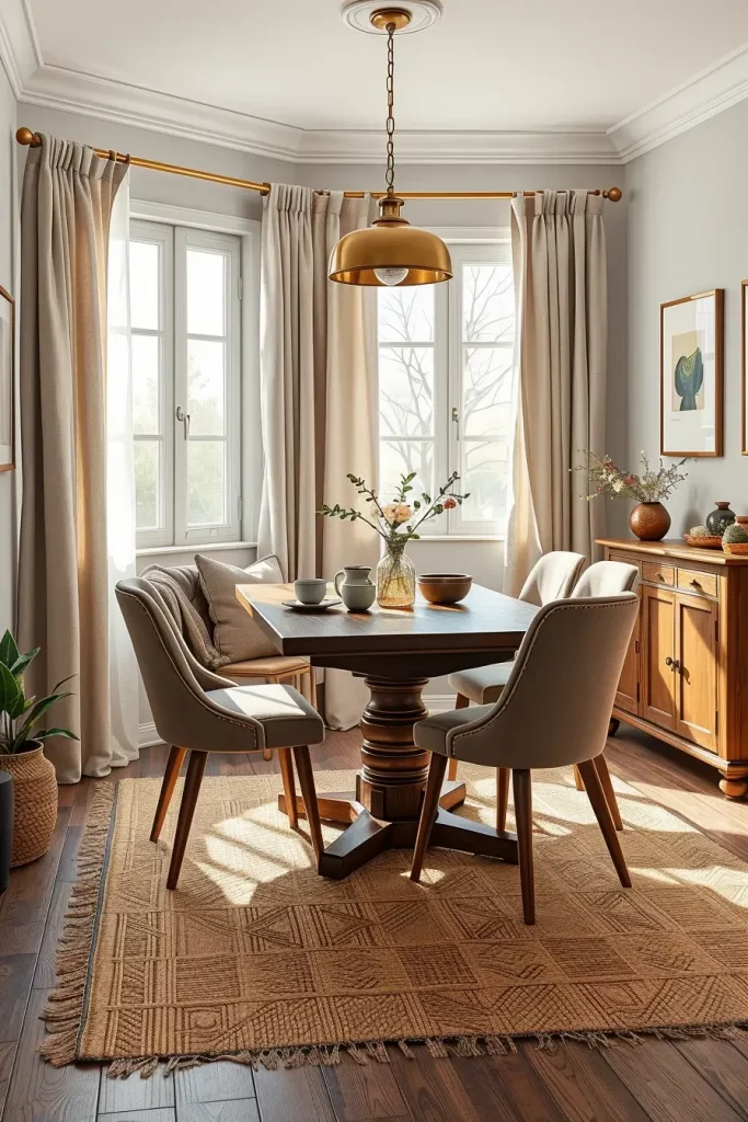 Before purchasing a rug I take accurate measurements to ensure it will accommodate table and chairs even when the chairs are fully extended. Dining areas benefit most from low-pile rugs since they offer better cleaning convenience. The space stays open because I choose subtle patterns in light tones without losing their interesting character.