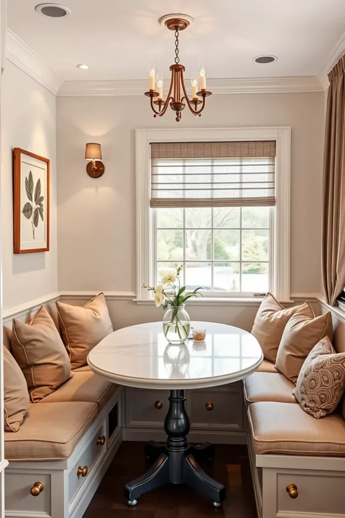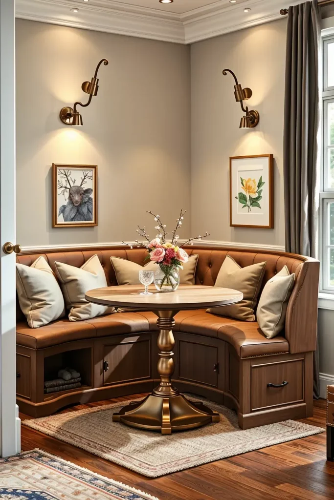 Architectural Digest defines banquettes as essential elements for restricting dining space. I agree completely. This design creates a welcoming environment that suits both short and extended dining occasions with family members.