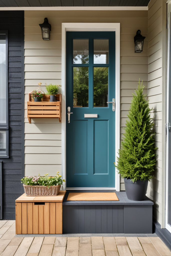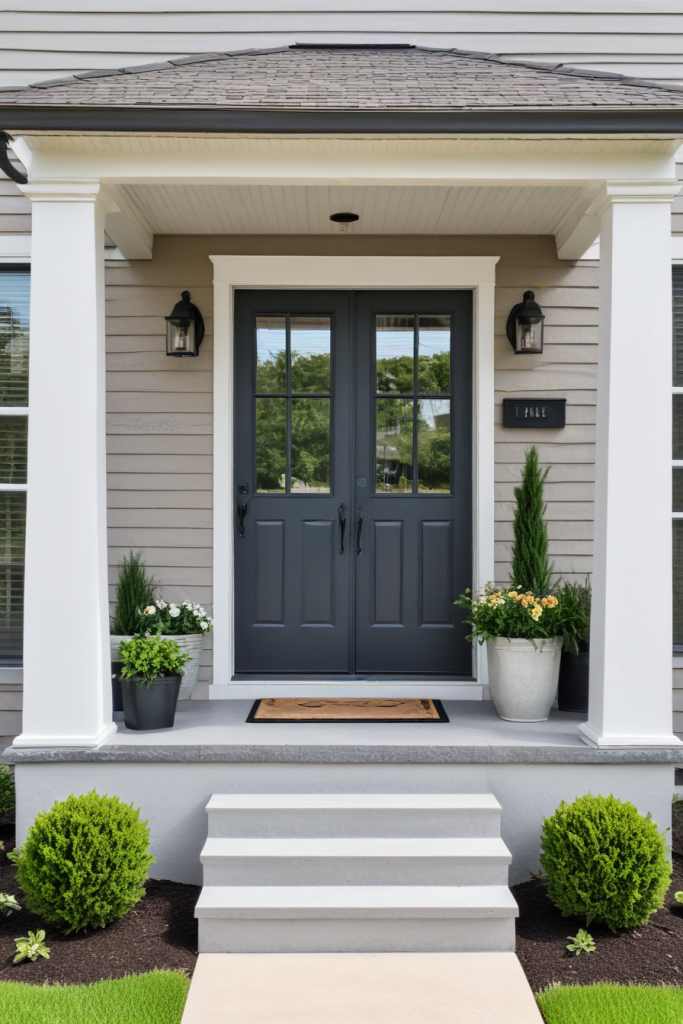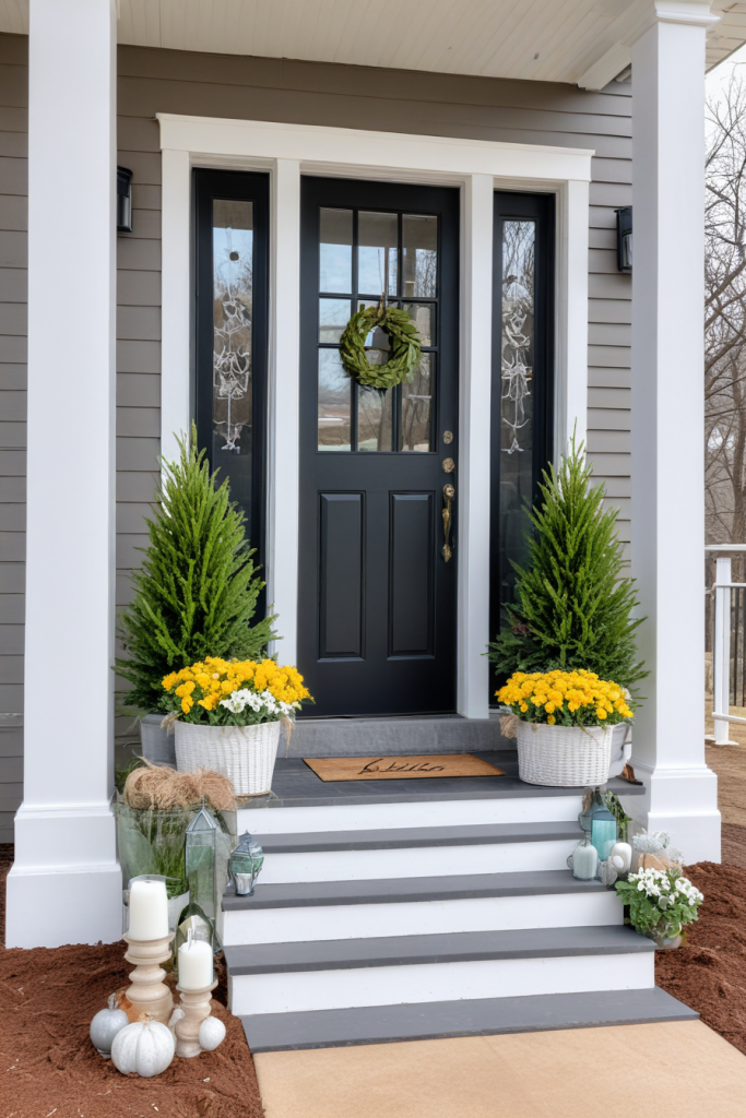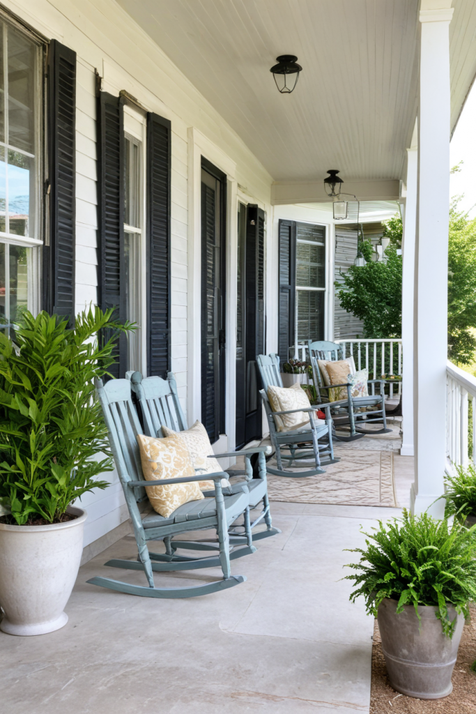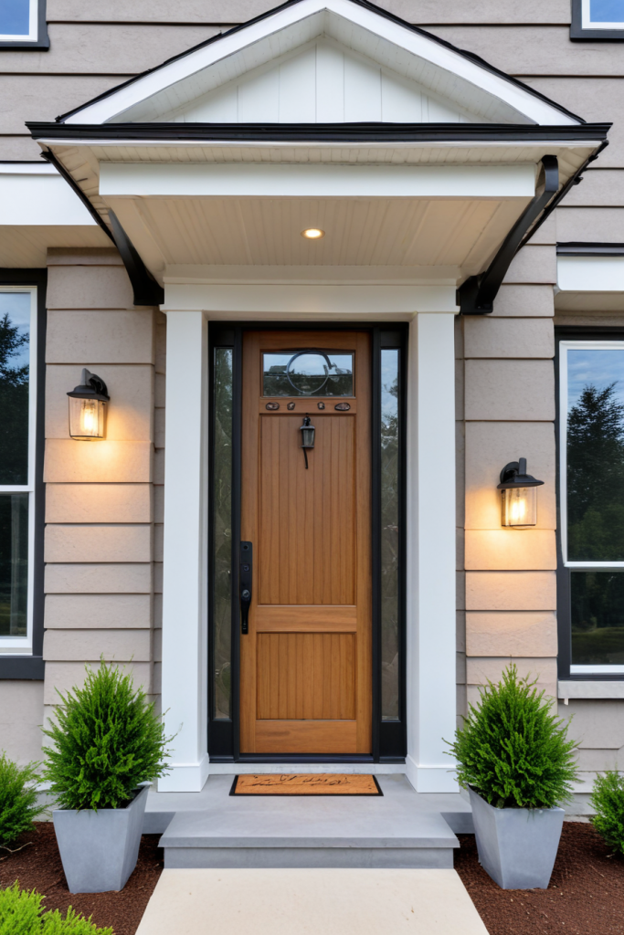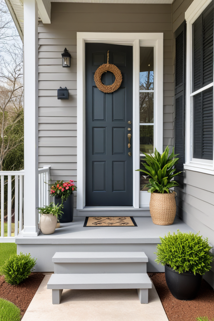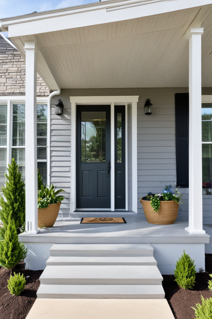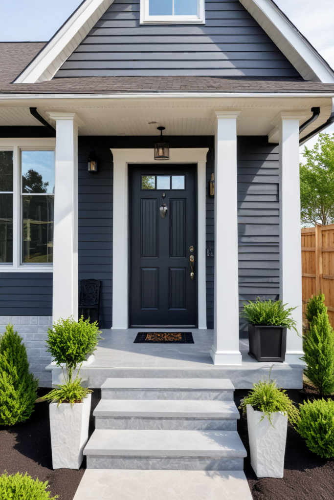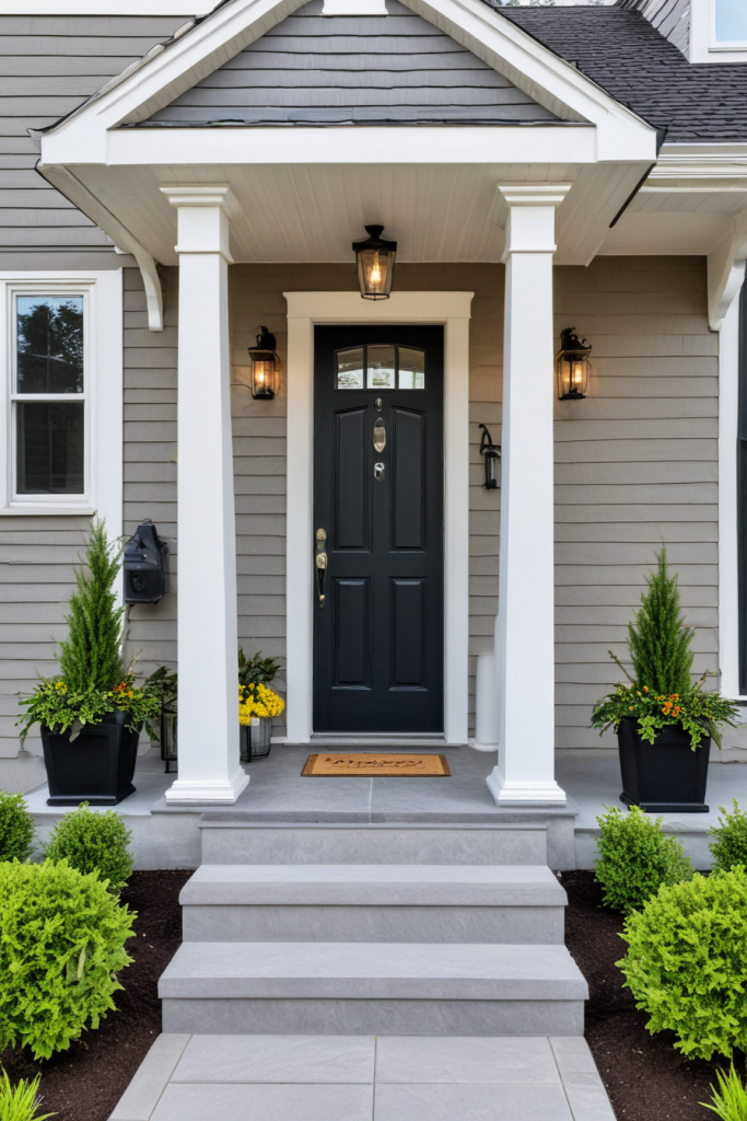 By adding soft pillows, comfortable seating, and gentle lights, your front porch can turn into an inviting oasis. Prioritizing the comfort level of the seating, along with the zoning color scheme, makes the place calm and serves as a quiet outdoor escape, not forgetting to mention, the contemporary design standard.
