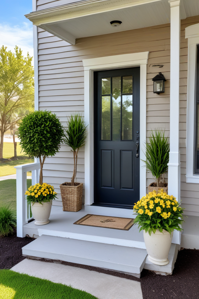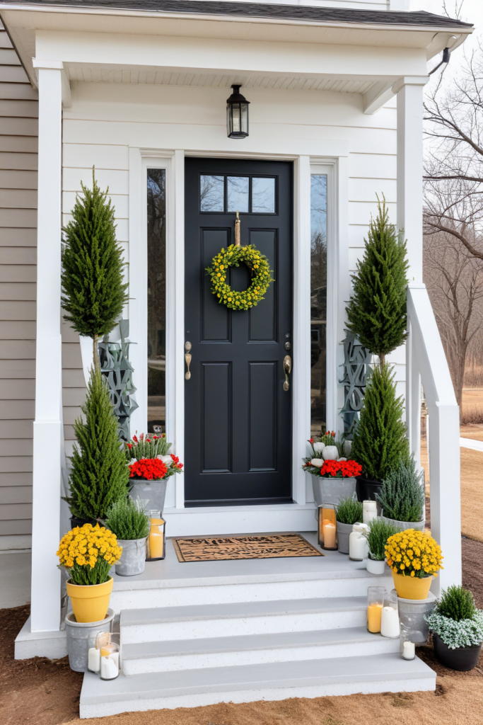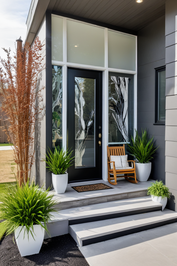 These steps appeal to the eye by combining wall art with sculpture pieces that not only stand out but also fit seamlessly into the entire look. Consider modern day wall art, artistic sculptures, or installations that reflect character and elegance on your small front porch.