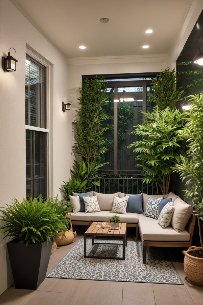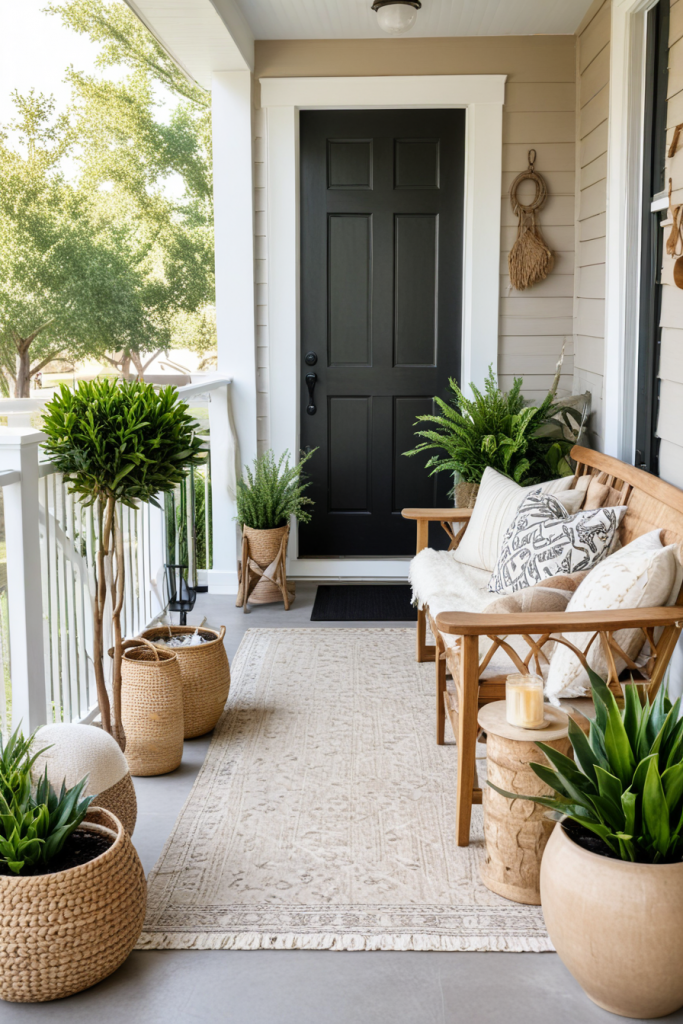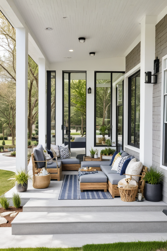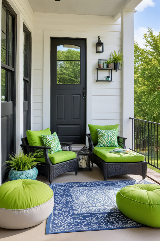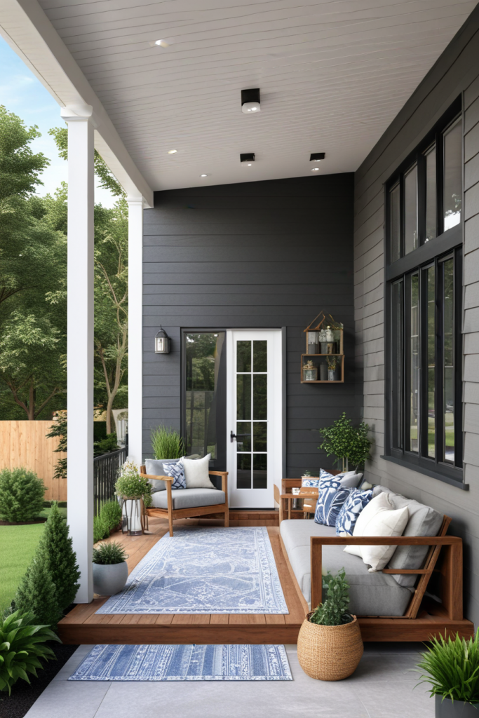 A well-chosen outdoor rug can anchor your porch design, adding warmth and texture to an otherwise compact space. Select rugs with modern patterns and durable materials that complement your decor while providing a comfortable, defined area that ties all design elements together.