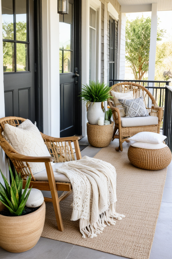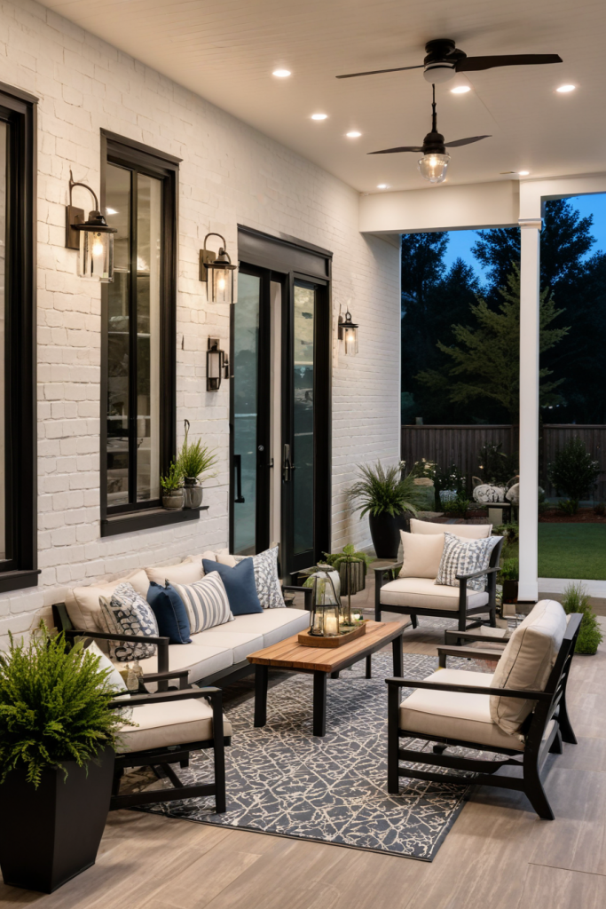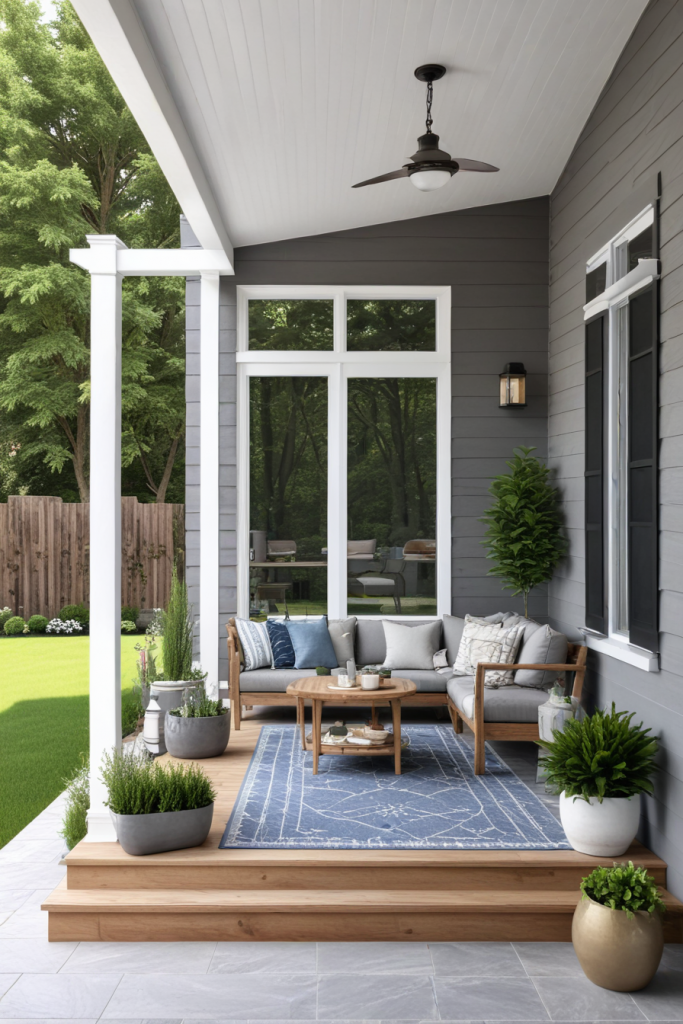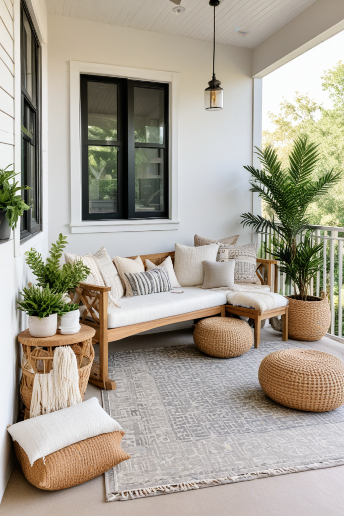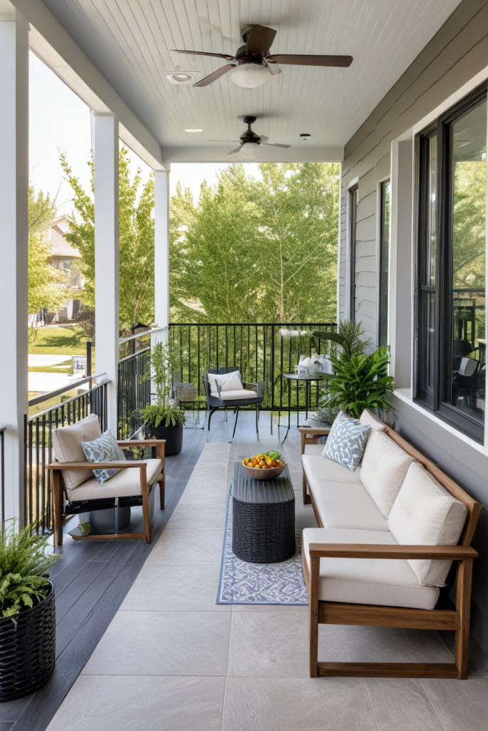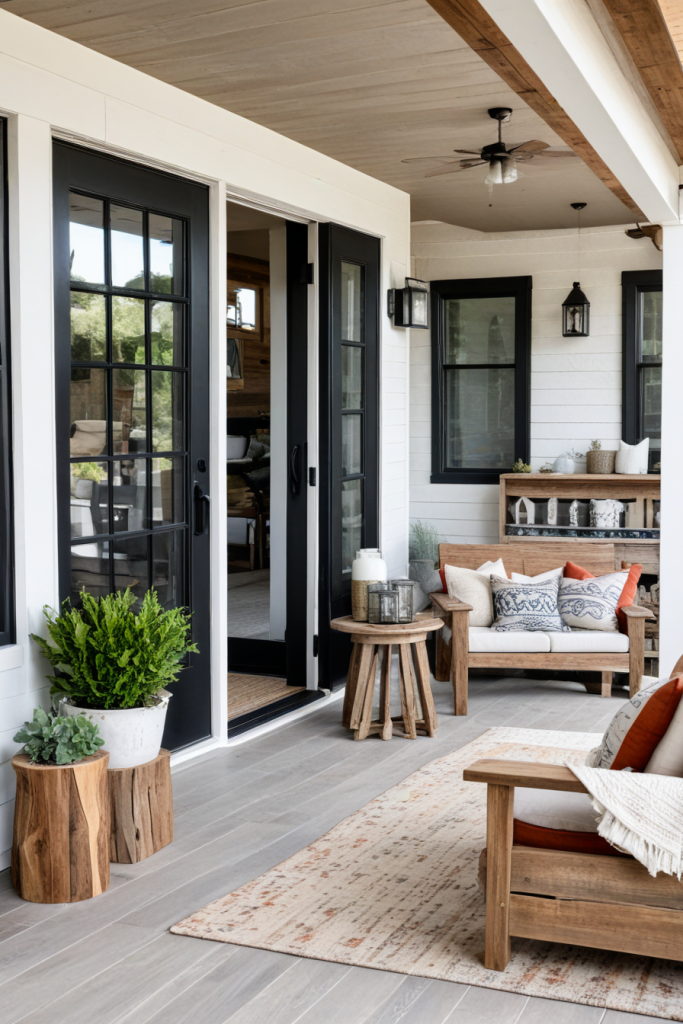 A well-chosen outdoor rug can anchor your porch design, adding warmth and texture to an otherwise compact space. Select rugs with modern patterns and durable materials that complement your decor while providing a comfortable, defined area that ties all design elements together.