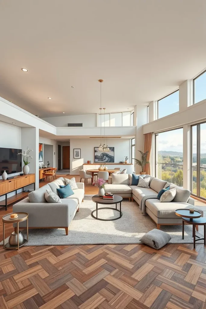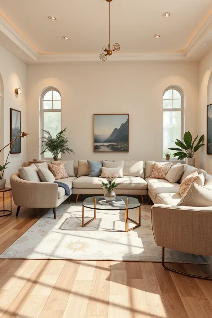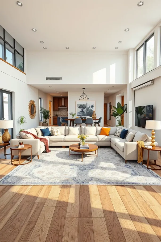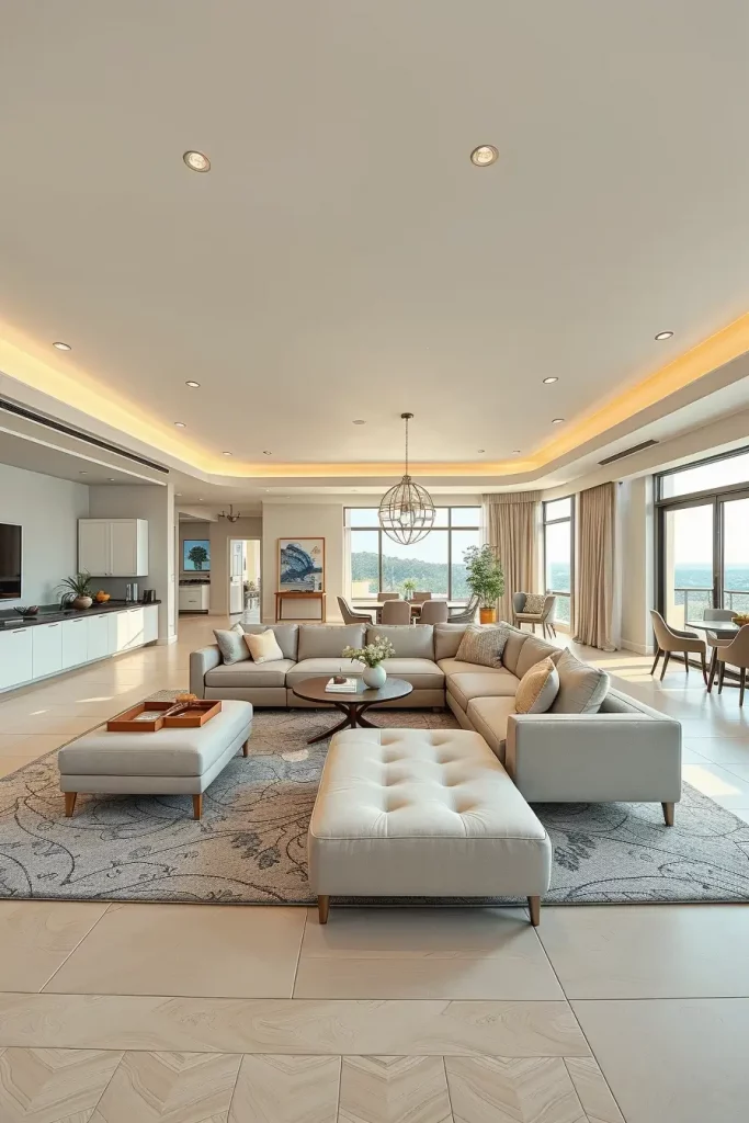 In the process of styling these sofas, it is common to have neutral fabrics and low profiles so as to create continuity in the transition between adjacent spaces. The room is visually balanced with the help of large rugs, accent chairs and modular coffee tables to achieve cohesion and proportion.