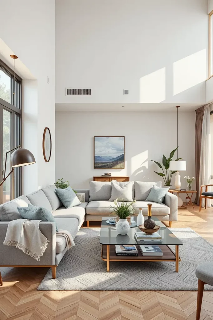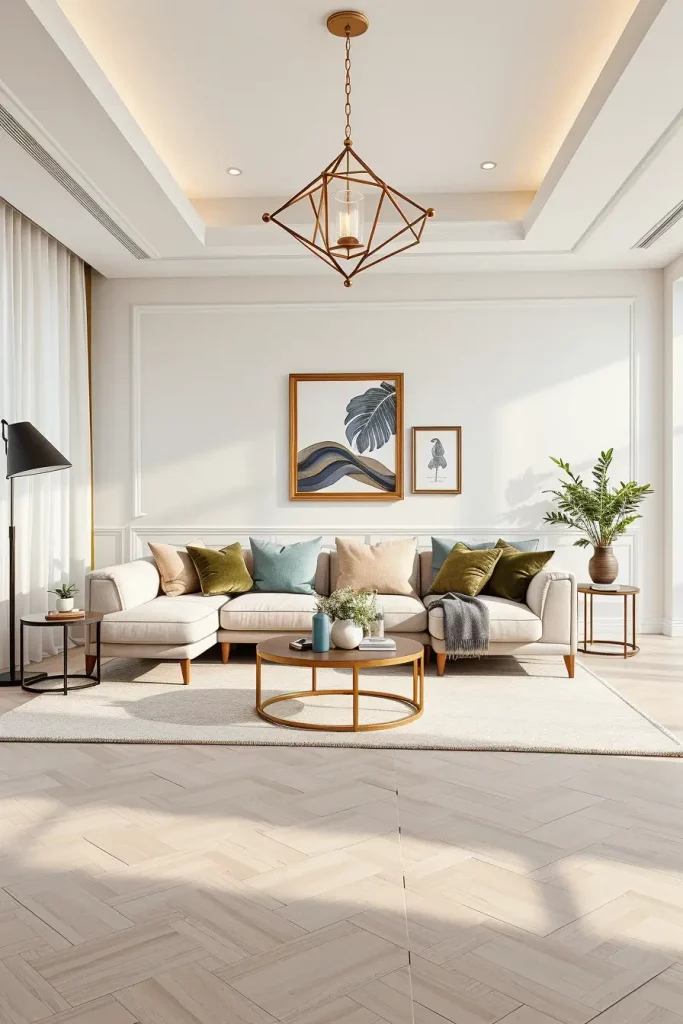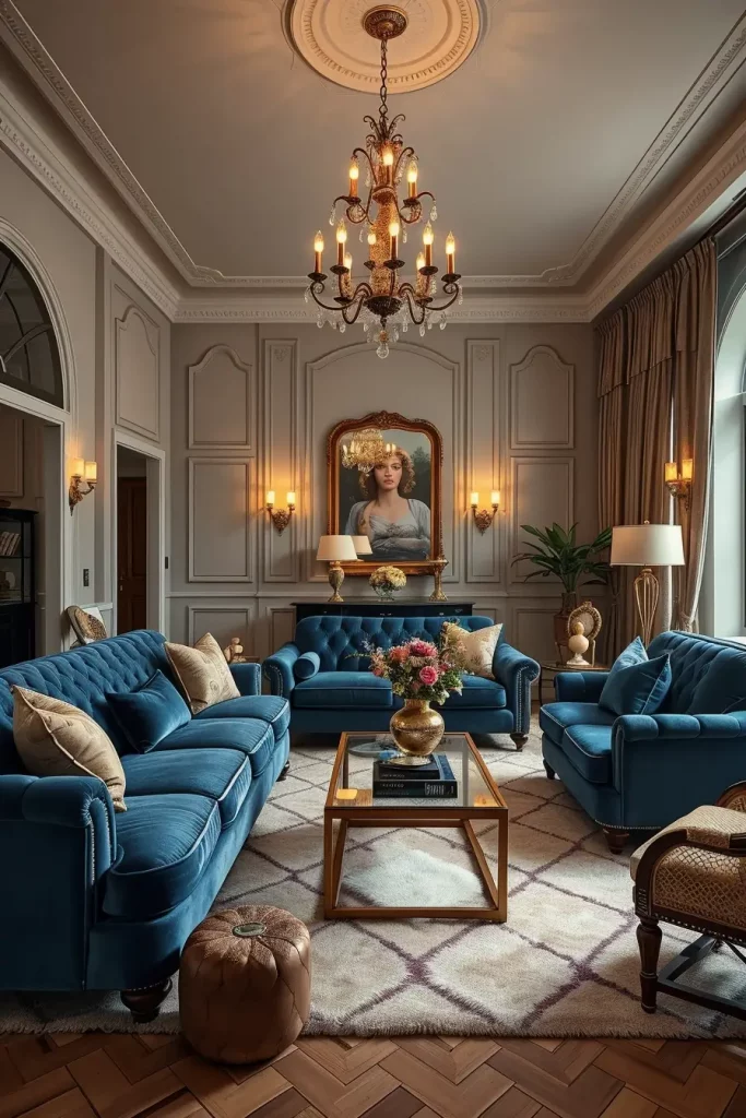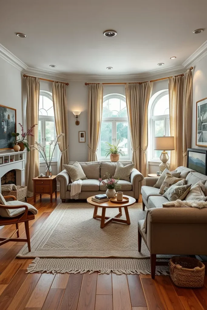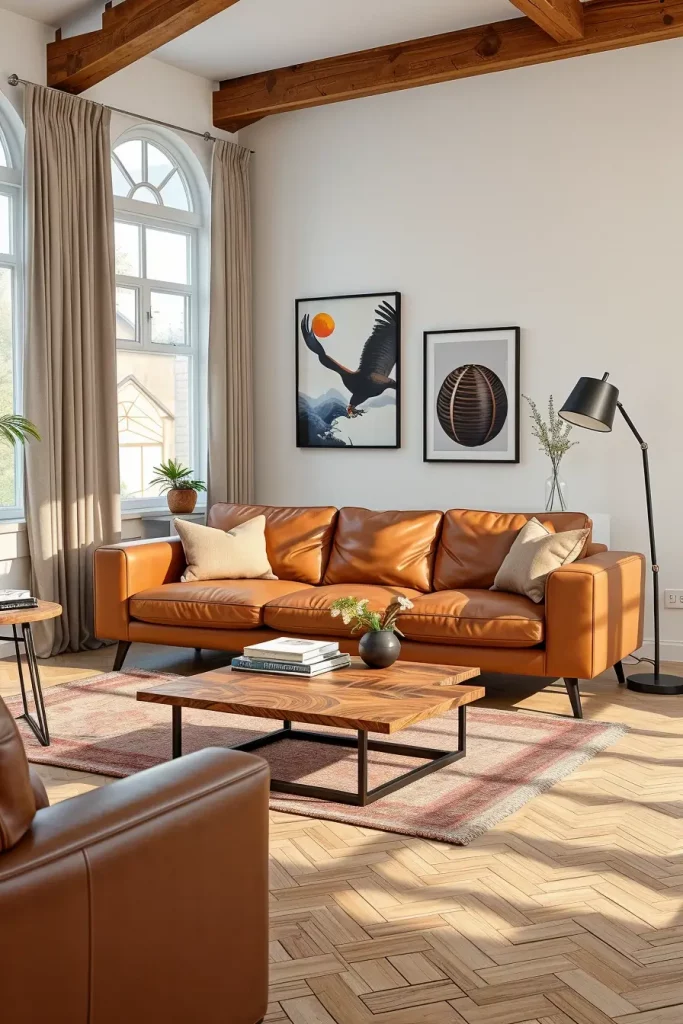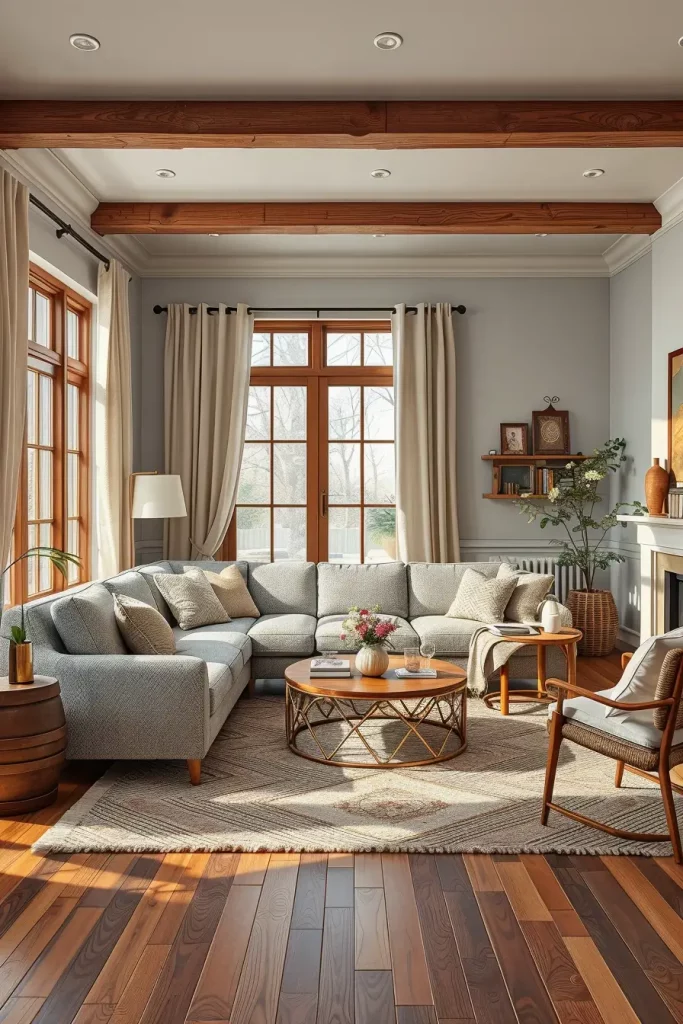 In order to establish balance, I would suggest retro sofas that would be matched with smooth coffee tables, geometric carpets, and metallic floor lamps. This juxtaposition is a transition between the old and the new and makes the space modern yet without losing its appeal.