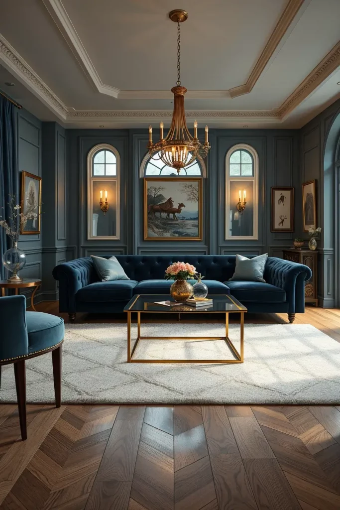 I would also add some small elements of metallic decoration such as gold-framed mirrors or small vases so that the color arrangement was raised to another level, and the room was supplemented with the dimension.