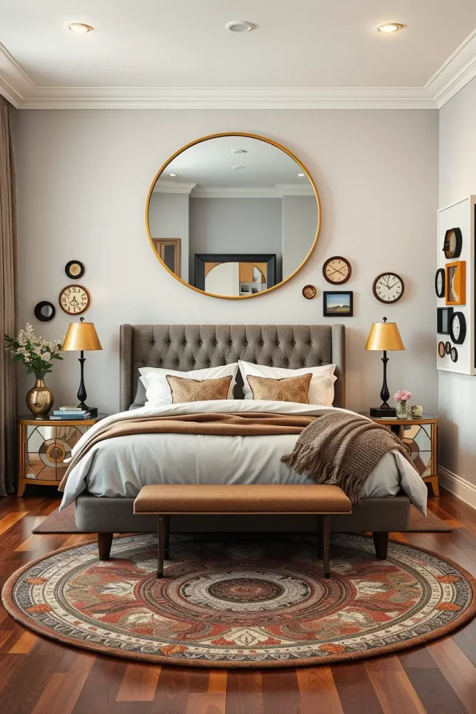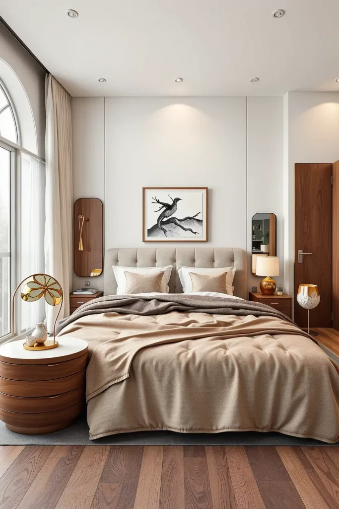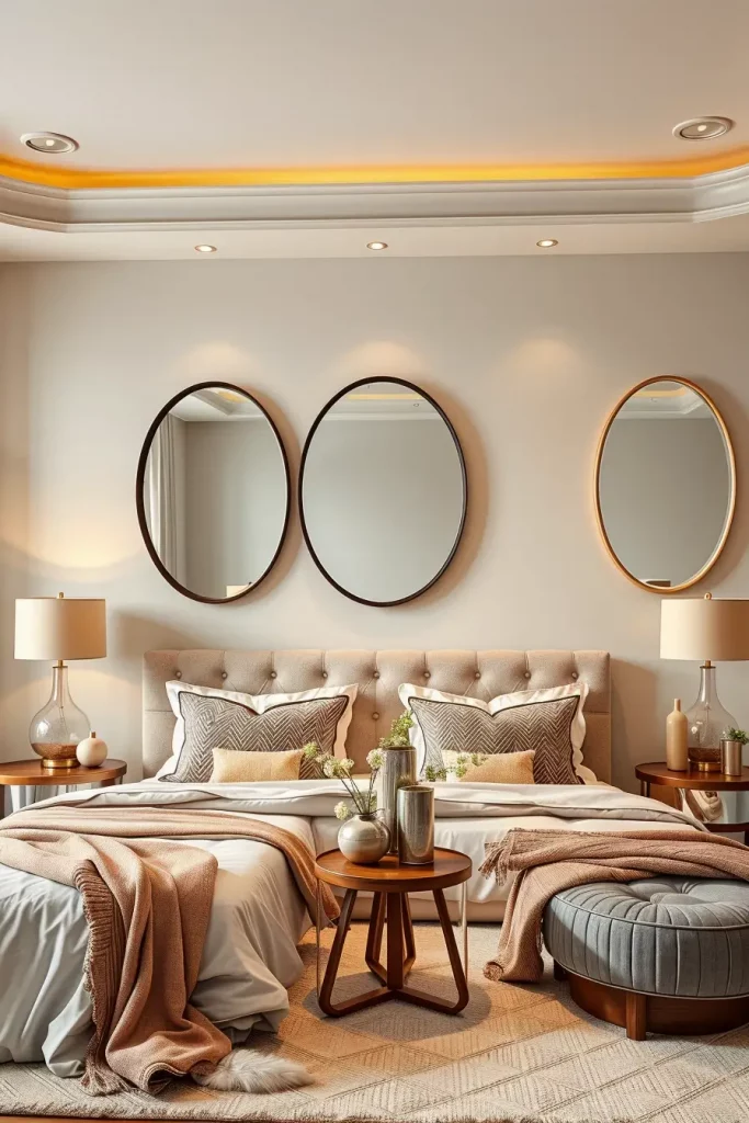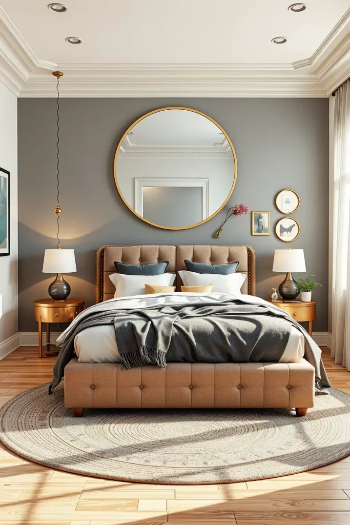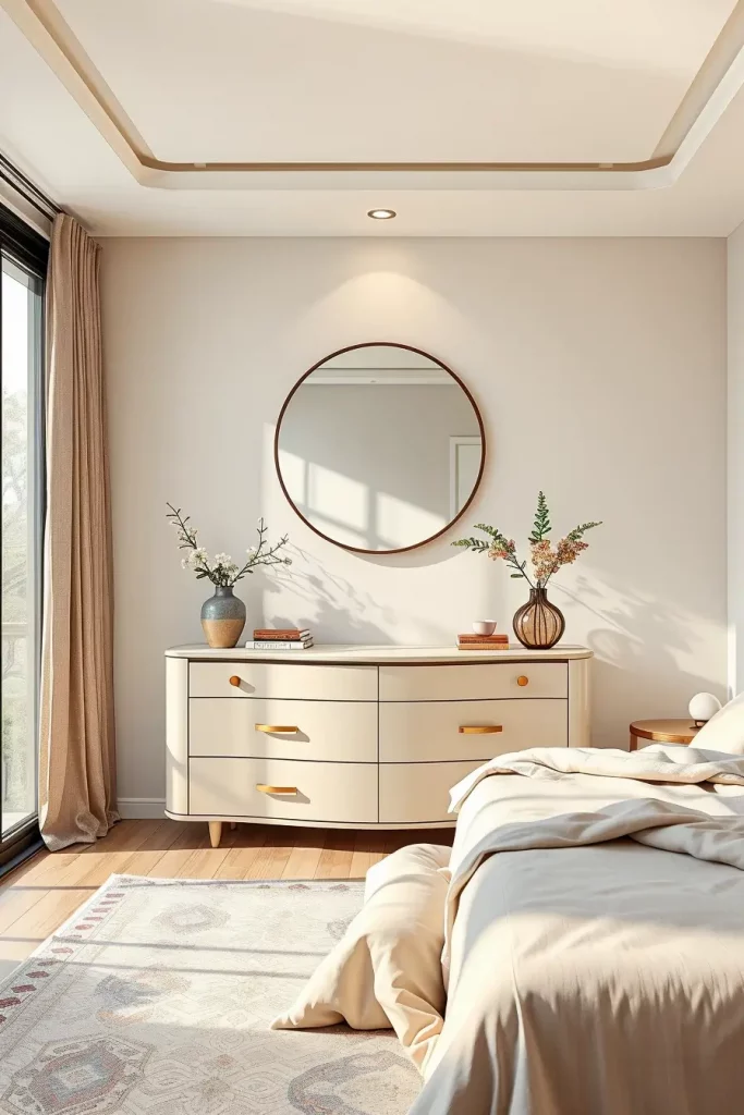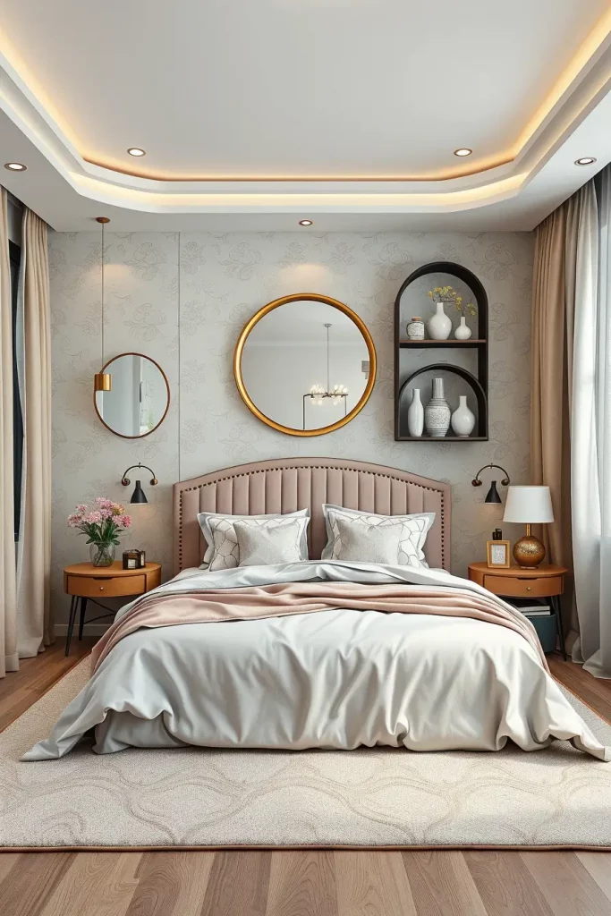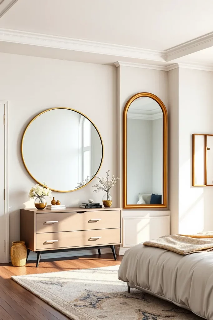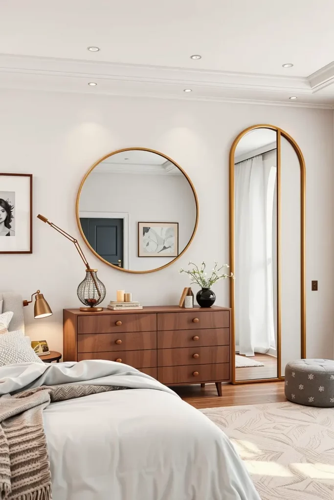 Mirrors are not only practical, but they also give a chance to add organic forms to the bedroom. The space may be more dynamic and artistic with rounded or asymmetrical mirrors.