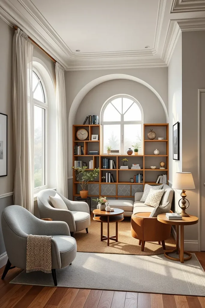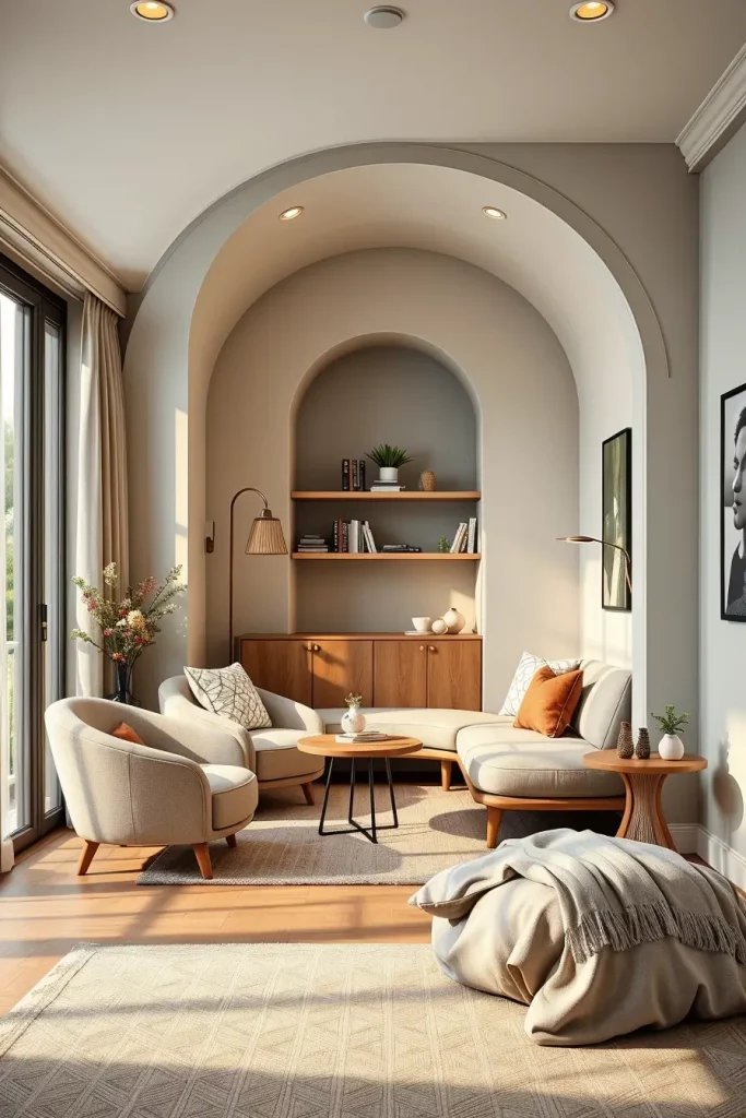 As an individual, I think this blend is ideal to clients who want a minimalist but comfortable look. According to Elle Decor, neutral color schemes may help to increase the sense of space and enable the curved furniture to be the highlight without dominating the room.