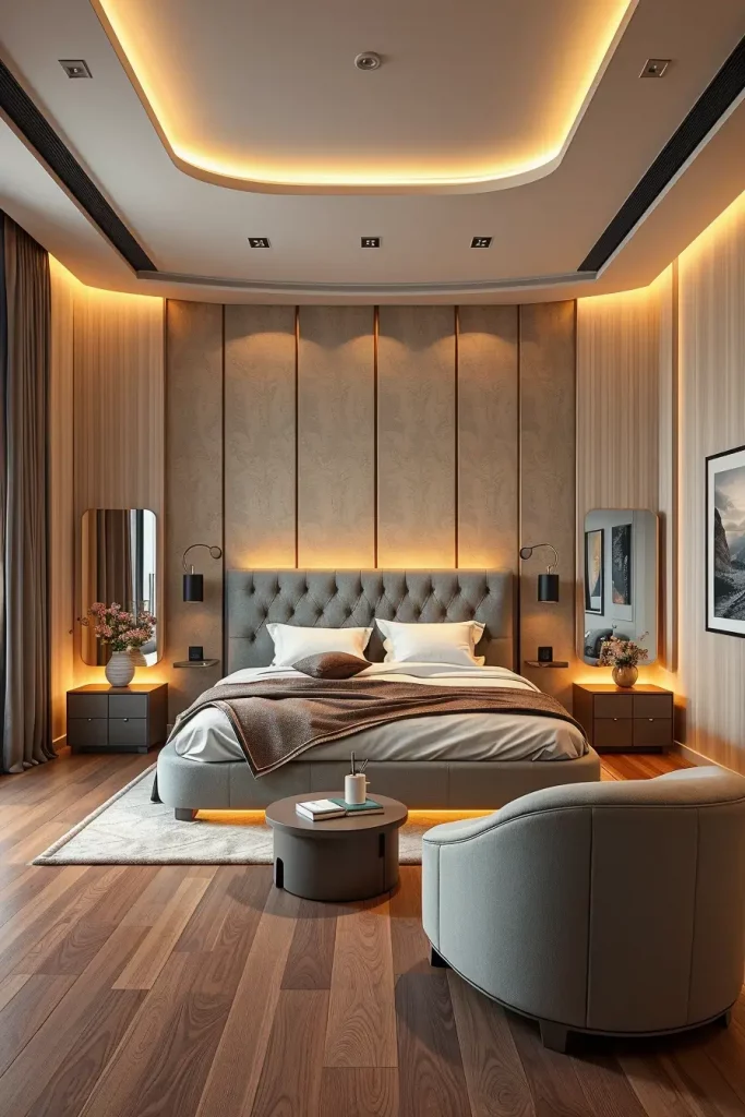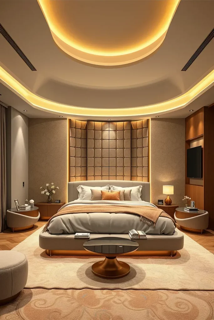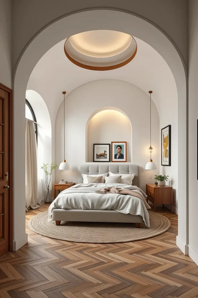 The introduction of the curved ceiling details can alter the impression of height and openness of a bedroom totally. I have employed such methods as gently arched tray ceilings or curved crown molding to give a more subtle but very apparent feeling of elevation.