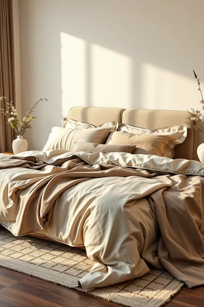Adding soft curves to the bedding layers is able to change the mood of the bedroom entirely. I usually suggest using quilts, blankets and duvets that have rounded edges or flowing drapes that fall naturally over the bed. These layers do not only give softness to the eye, but also give a feeling of comfort and closeness, particularly when used with fluffy textures. The aim is to make it look welcoming, something that is as good as it looks to relax at the end of the day.