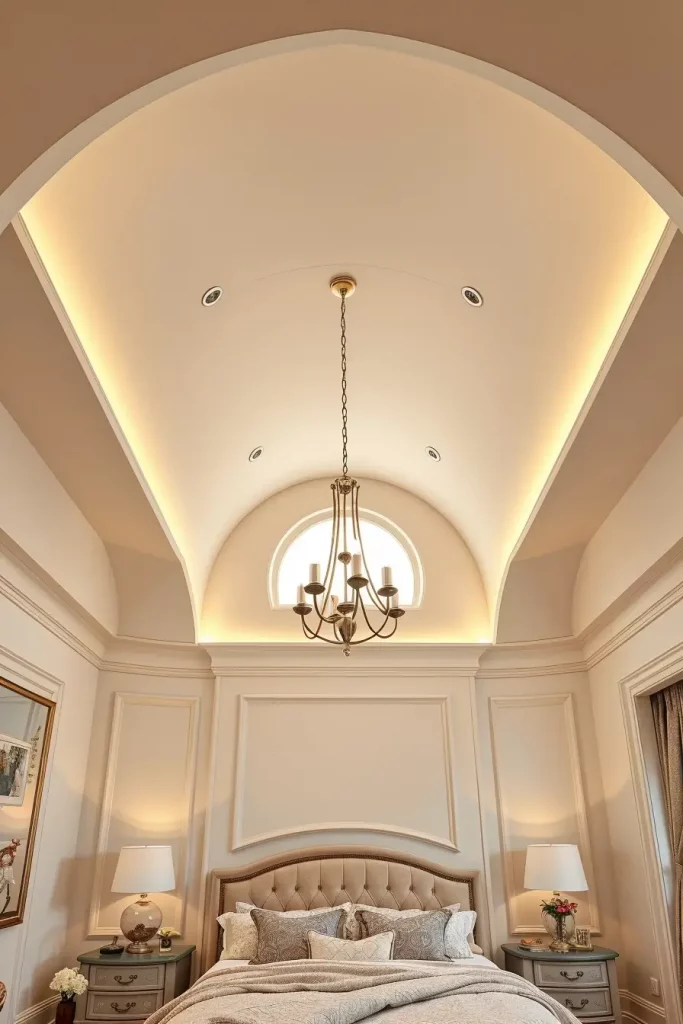 In my opinion, the use of curved ceilings is a little-used method of making a bedroom more luxurious and architectural without overdesigning the space. Elle Decor has observed that even subtle changes in the ceiling can alter the ambiance of a space and I concur.