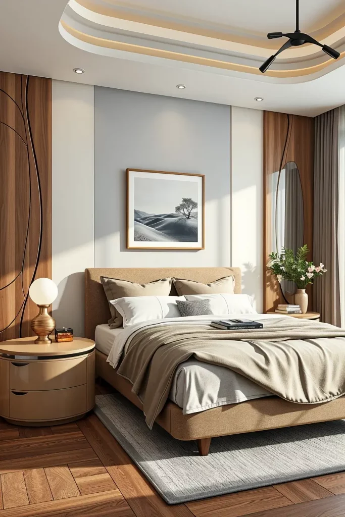 As soon as I enter a bedroom, which is designed with soft curves as its base, I feel a soothing balance. These shapes have a natural flow that leads the eye, and it is a smooth flow that cannot be matched by straight lines. The beauty is in the manner in which the curves link all the spaces, the bed to the sitting nook, with no sudden discontinuities. This style is exquisite whether in big or small rooms and makes the room more cozy without compromising on openness.