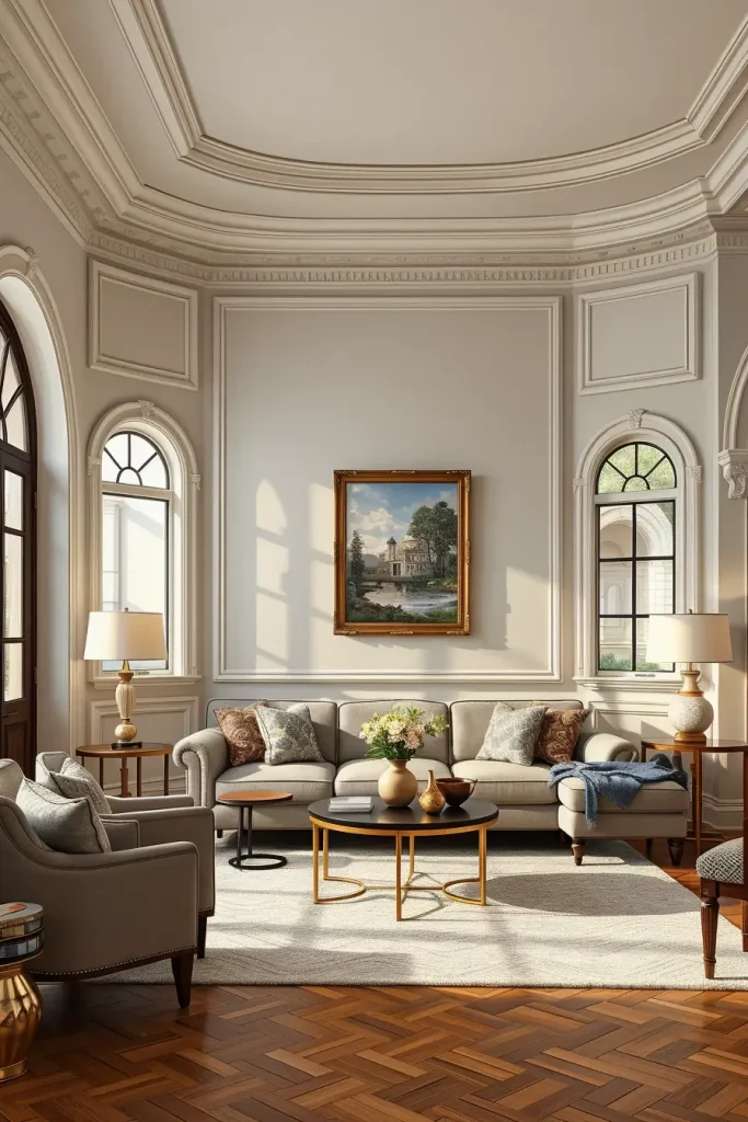 I apply arched doorways as an ornamental and structural accent in my projects. They go so well with pastel color schemes and curvy furnishings. They can be framed using thin molding or they can even be emphasised using a different finish such as stone or wood. They are curvy like other things in the room rugs, sofas and mirrors forming a visual harmony that makes it hard to ignore.