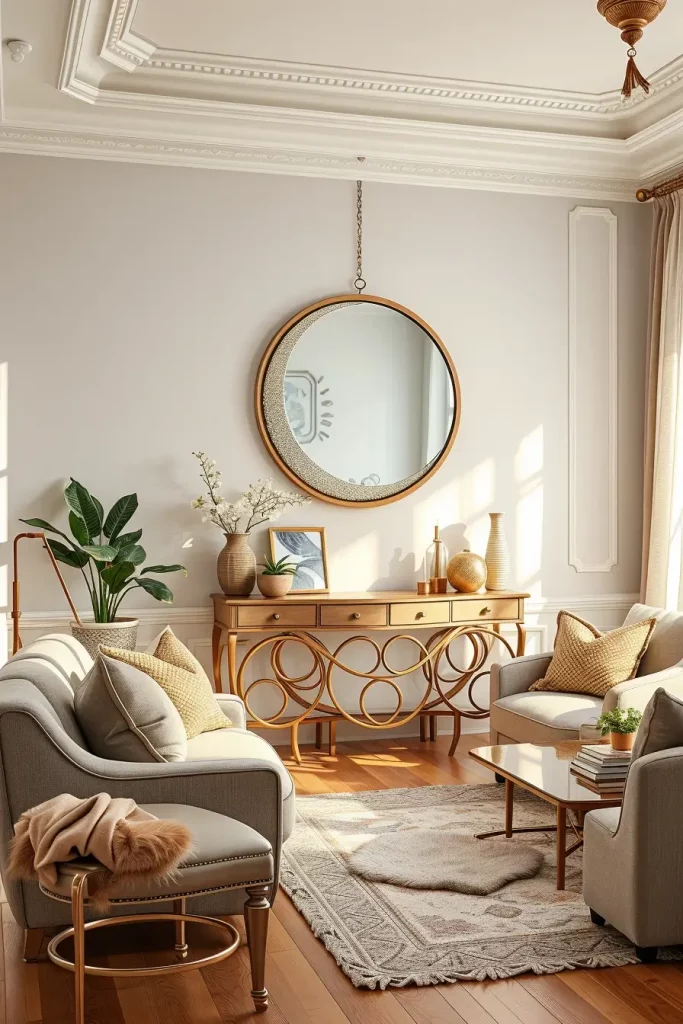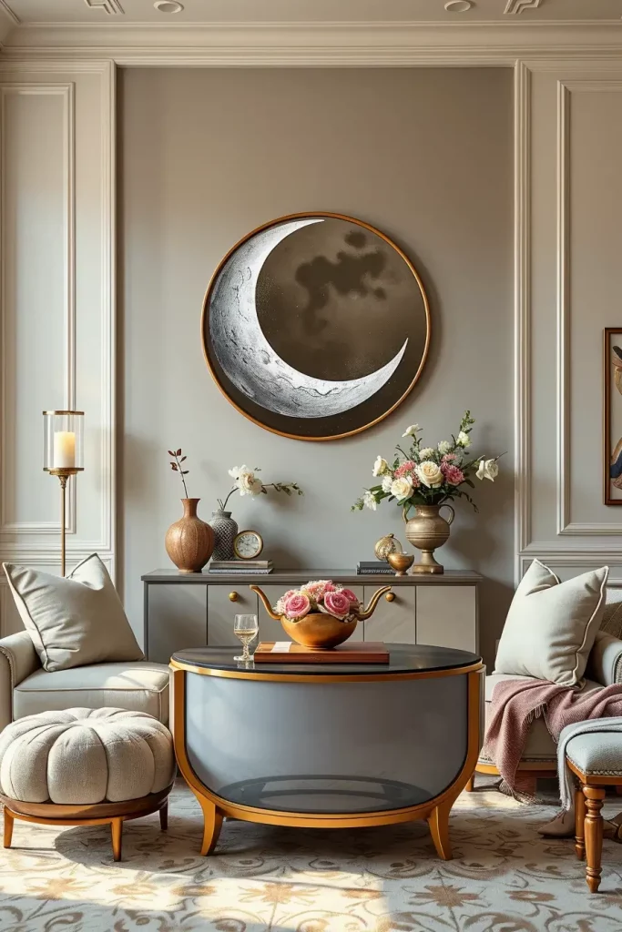 My most popular ones are half-moon mirrors, lunar-inspired ceramics and even candleholders with crescent shapes. They provide a poetic touch which is not so overpowering but well done. They accompany soft metallic surfaces such as brass, champagne gold or antique bronze, especially well.