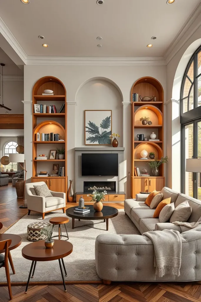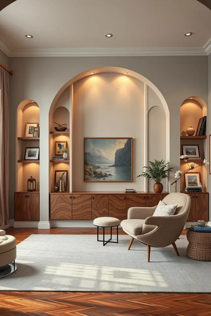Arched built-ins are another gorgeous option bringing both utility and stylishness and extending the motif of curved contours to the rest of the room. These in cropped areas add depths to the walls and may be utilized as shelving, display or merely architectural stimulation. I would recommend to use them in the living rooms which require a soft focal point without occupying additional floor space.